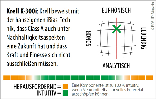 Krell K-300i: Krell beweist mit der hauseigenen iBias-Technik, dass Class A auch unter Nachhaltigkeitsaspekten eine Zukunft hat und dass Kraft und Finesse sich nicht ausschließen müssen.