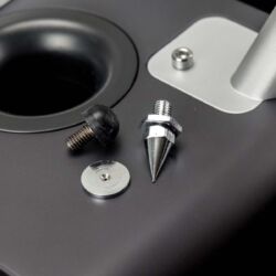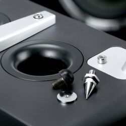 Heco wandelt mit seinen Exemplaren der Direkt-Serie auf unüblichen Pfaden. Wo das Gros moderner Schallwandler, lang und dünn wie Windhunde, an Anorexie zu leiden scheint, wirken die direkten Hecos wie Pitbulls: Kompakt, massiv, mit breiter Brust, vermitteln die Kisten bereits eine Ahnung von mitreißender Kraft und direktem Drang nach vorne, ohne auch nur einen Ton von sich gegeben zu haben. Dazu die plakativen Rallyestreifen auf mattschwarzem Lack – da werden bei mir Assoziationen an alte Sportwagen geweckt. Das auf drei Standfüßen „schwebende“, nach hinten geneigte Chassis vermittelt eine irgendwie verwegene Dynamik, die die Heco trotz aller Reminiszenzen an vergangene Tage auch in modernem Ambiente alle Blicke auf sich ziehen lässt. Dank des Abstands zum Bodenbelag können die beiden Bassreflextrompeten im Gehäuseboden frei in den Raum ventilieren und wandeln bis hinunter zu 32 Hertz alles in bewegte Luft, was vom Verstärker angeliefert wird. Zwecks Vermeidung von Druckverlusten durch im Takt flatternde Seitenwände wird das Gehäuse der Einklang aus knapp zwei Zentimeter starkem MDF geschreinert und im Inneren mehrfach verstrebt. Das daraus resultierende Lebendgewicht von 19 Kilo pro Stück vermittelt in Relation zur kompakten Erscheinung einen vertrauensfördernden Eindruck von physischer Stabilität.