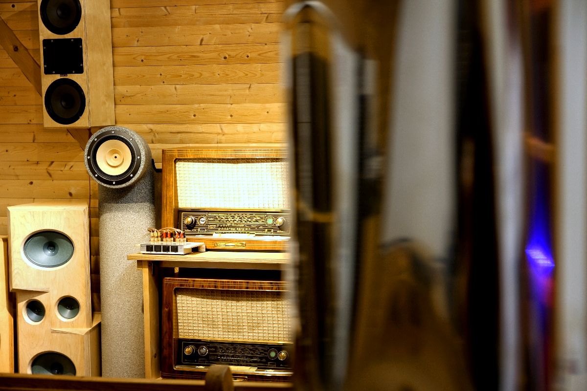 Ein ganzes Haus voller alter Radios und ungewöhnlicher Lautsprecher. In jeder Ecke steht etwas Neues, Altes, Schräges zum Entdecken – und ein großer, weißer, freundlicher Hund begleitet uns beim Streifzug durchs Haus von Lautsprecher und mehr.
