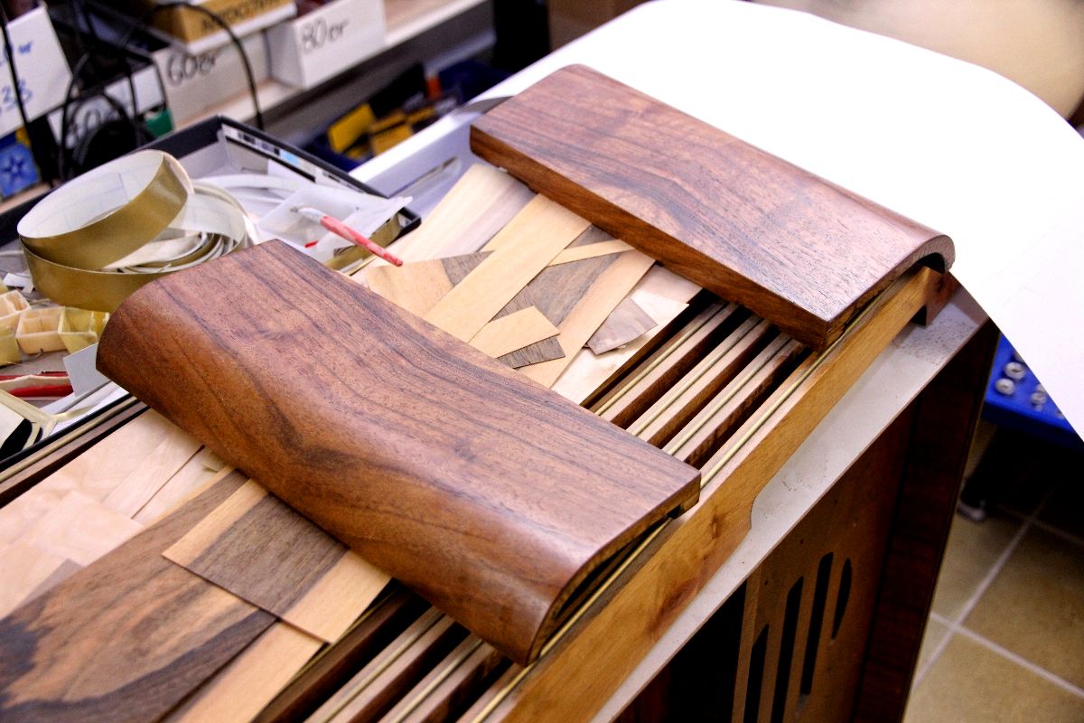 Gleich dabeben feiern die fetten Siebziger und Achtzigerjahre fröhliche HiFi-Urstand: ein Dual-Verstärker mit ungefähr zweitausend Knöpfen und Schaltern erstrahlt mit leuchtendblauen LED-Balken. Etwas zurückhaltender illuminiert ist das Sammelsurium von außergewöhnlichen Breitband-Lautsprechern an der hinteren Wand, wahlweise angefeuert von einem modifizierten Saba Freiburg oder einem gestandenen PA-Verstärker. An der anderen Wand lässt sich übrigens eine Leinwand herunterfahren. Das dort installierte Soundsystem ist in erster Linie dazu da, mit Freunden des Hauses hin und wieder einen „gescheiten“ Kinoabend zu verbringen. Ein kleiner, privater Ausgleich des Herrn Kühn zum üblicherweise langen Arbeitstag. Der aber nur deswegen lang ist, weil der Mann schlicht Lust auf das hat, was er hier den lieben langen Tag so tut. Das ist seinen individuellen Werken, den liebevoll herausgearbeiteten Details und der insgesamt Boutique-mäßigen Herangehensweise auch anzumerken. Und weil in diesem Umfeld – Neuerwerbungen, Zufallsfunde, Geistesblitze – auch ständig Bewegung im Warenangebot ist, lohnt sich wohl auch ein regelmäßiger Besuch.