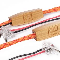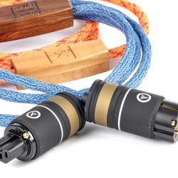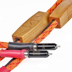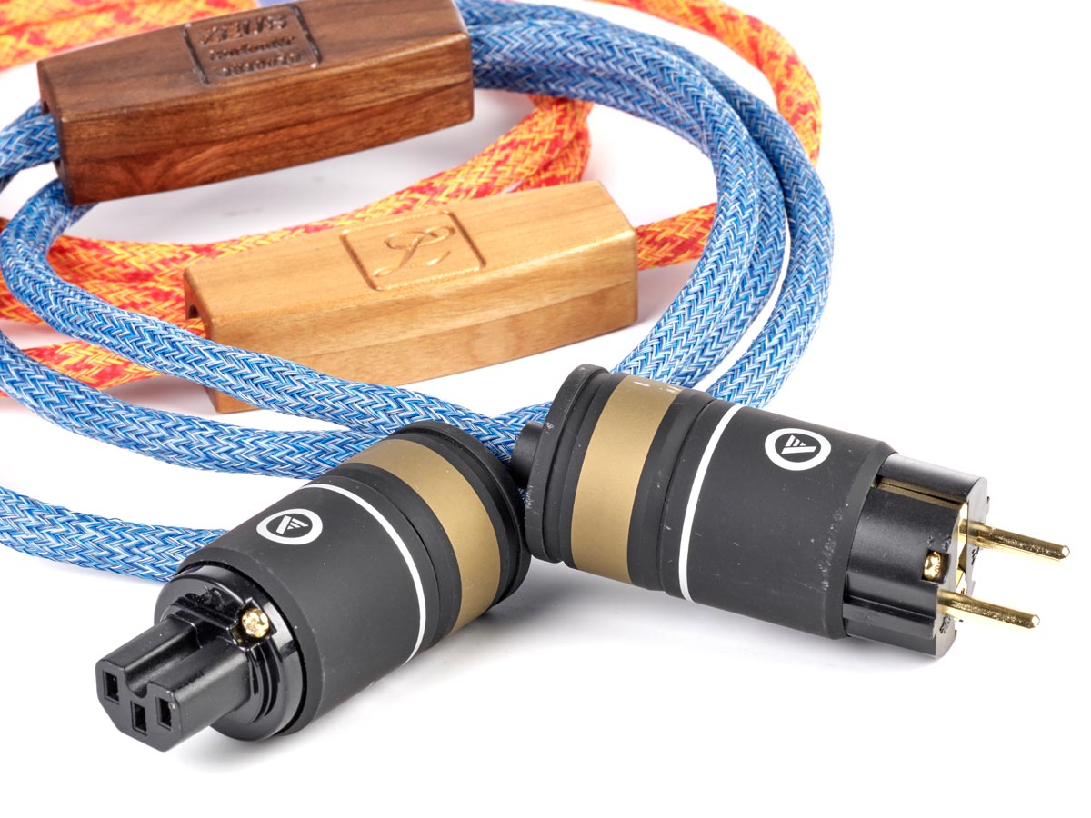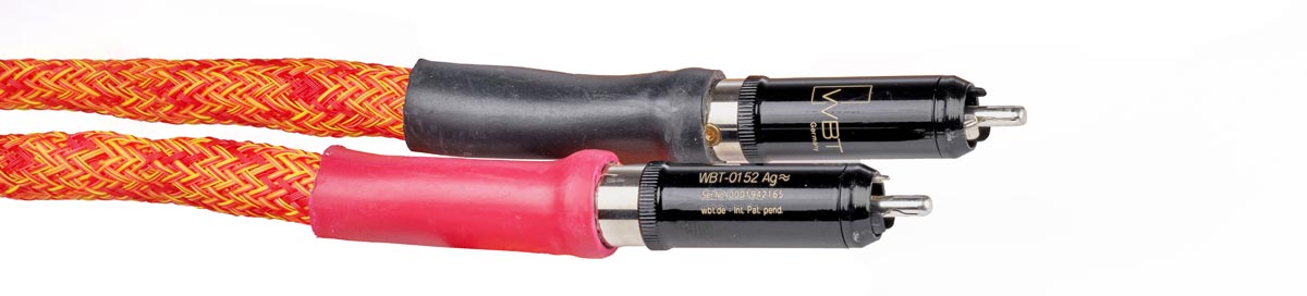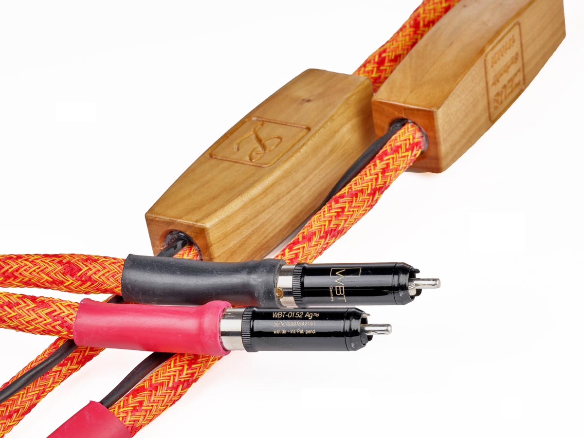 Unsere Exemplare sind blau und, in der Ausführung „Fire“, orangefarben ummantelt – eine ganze Reihe anderer Farben sind möglich. Sie zeigen sich leidlich flexibel und lassen sich relativ gut verlegen, von sehr kleinen Radien würde ich aber absehen. Die WBT- bzw. Viablue-Konfektionierung wirkt ordentlich und professionell, auch hier bietet Lehr Audio alternative Stecker an. Hier und da sieht man die manuelle Verarbeitung der Kabel, beispielsweise an den Elektronikkästchen, aber auch dies möchte ich nicht als Mangel betrachtet wissen, sondern vielmehr als gutes Handwerk. Volker Lehr fertigt übrigens auch diese Kästchen aus unterschiedlichen Hölzern.