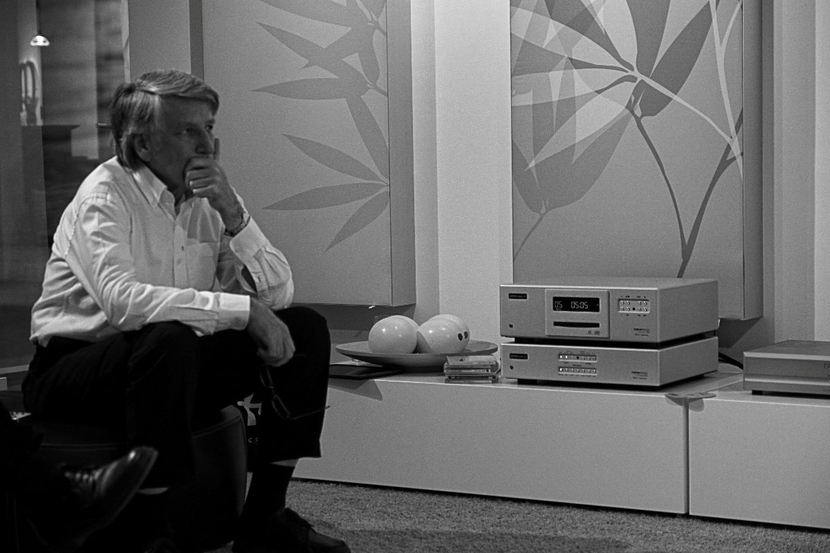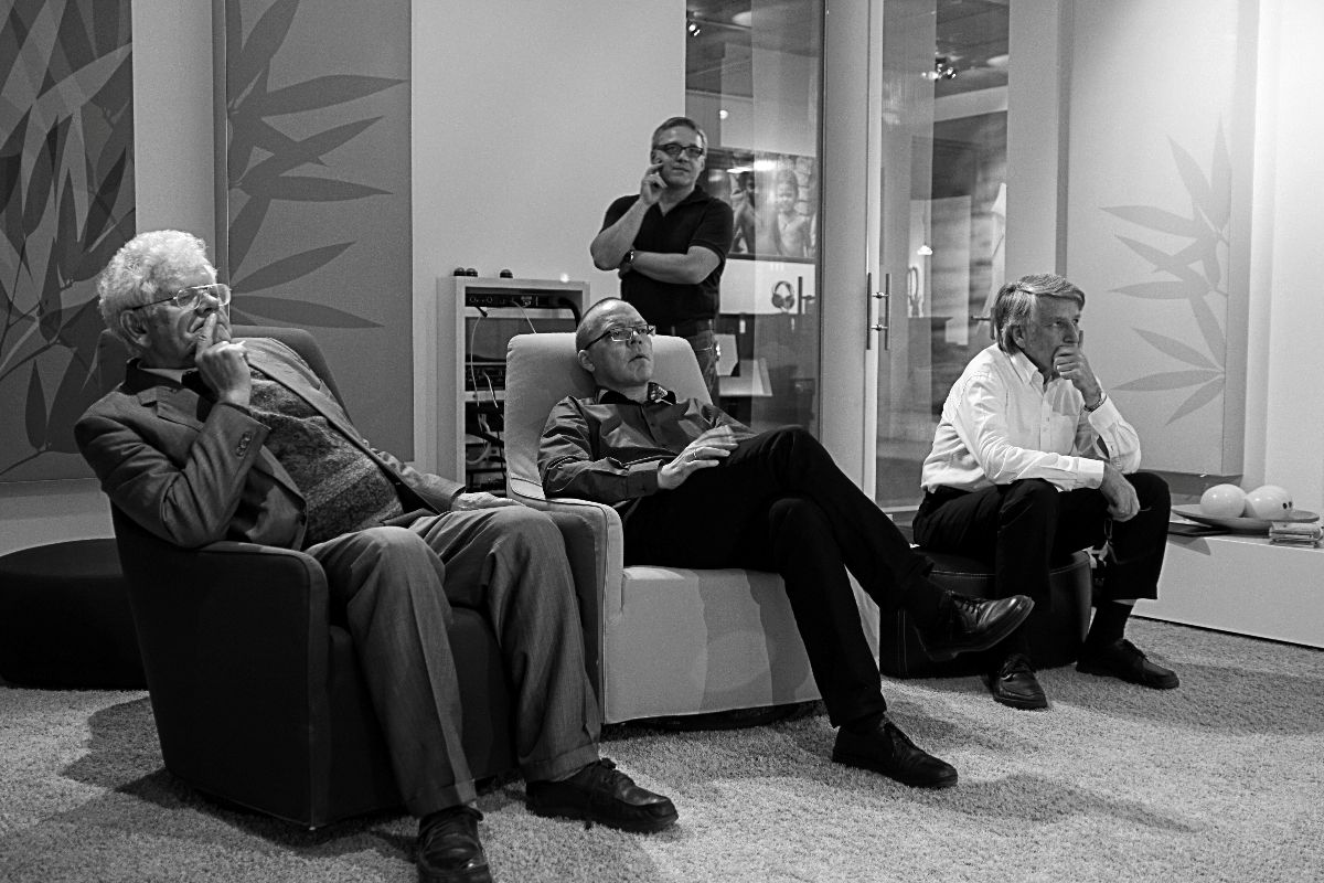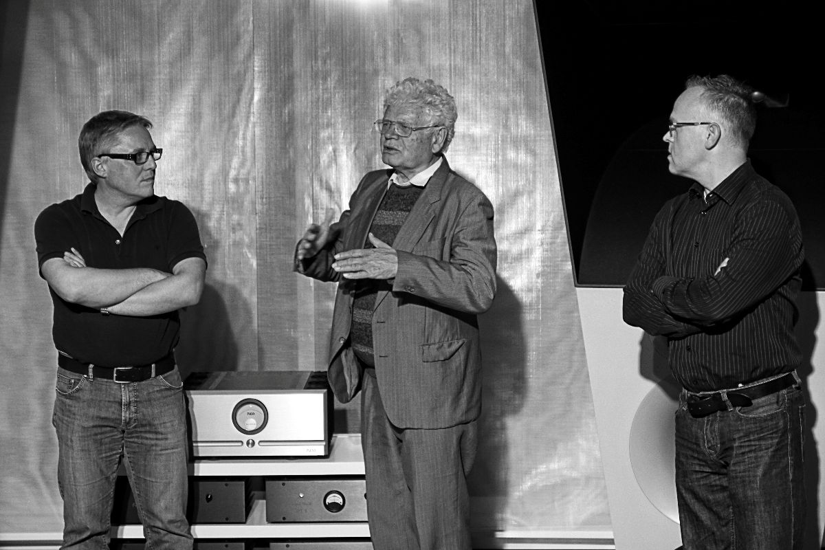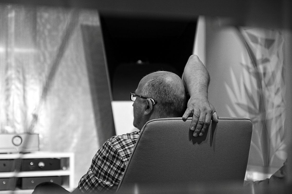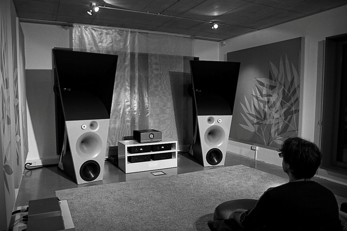 Aus praktischen Gründen – Stichwort: Sweetspot – wurde vereinbart, die Hörsessions in kleinen Dreiergrüppchen anzugehen und dann nach gusto zu wechseln. Abhängig vom individuellen Temperament ergab sich die Zusammensetzung der jeweiligen Trios recht schnell, wurden schon einmal die Tonträger vorsortiert, die Playlists konfiguriert. Oder auch ein dritter Kaffee geordert, zur Beruhigung. Auf der MySound-Terrasse pendelte die Stimmung zwischen Urlaub und Vorfreude hin und her, meistens sogar gleichzeitig.