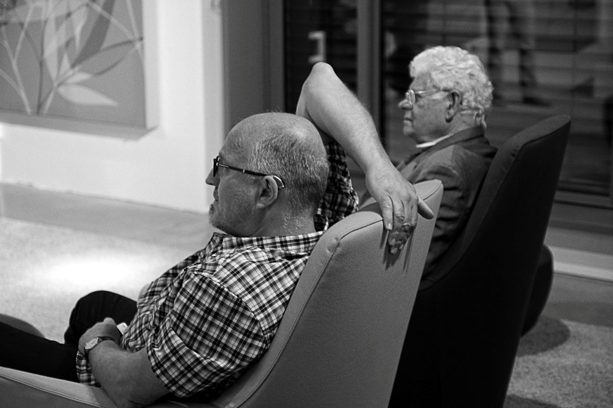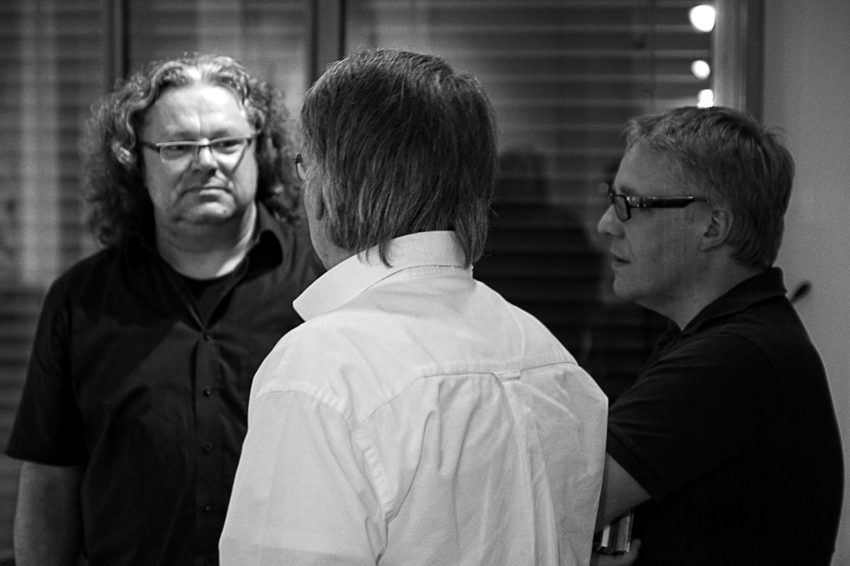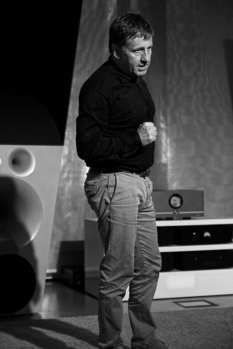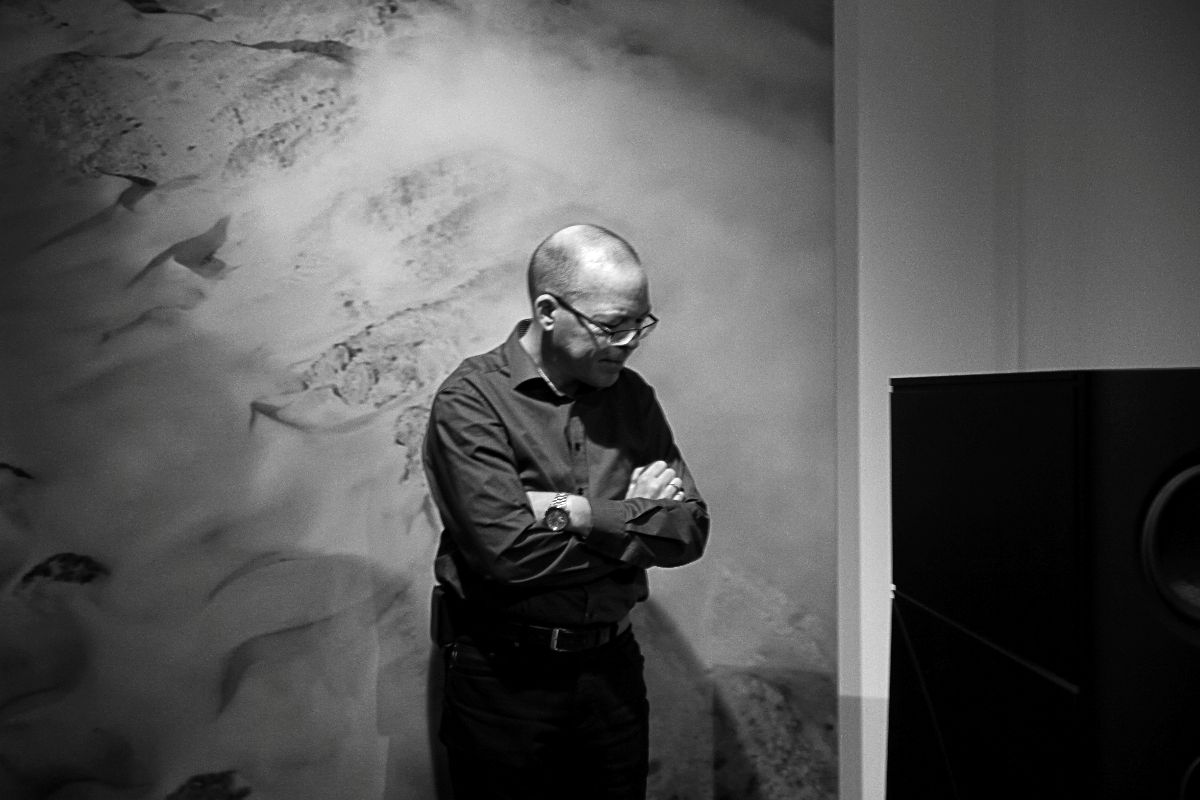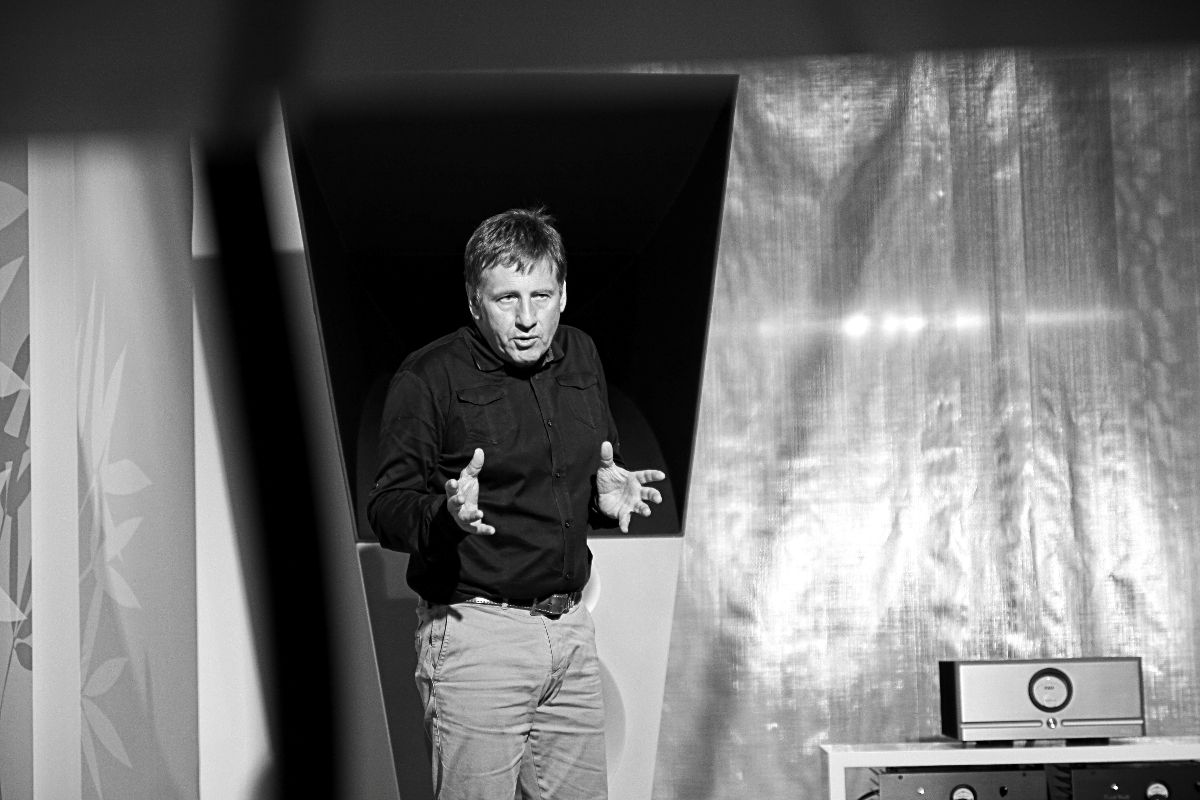 Aus praktischen Gründen – Stichwort: Sweetspot – wurde vereinbart, die Hörsessions in kleinen Dreiergrüppchen anzugehen und dann nach gusto zu wechseln. Abhängig vom individuellen Temperament ergab sich die Zusammensetzung der jeweiligen Trios recht schnell, wurden schon einmal die Tonträger vorsortiert, die Playlists konfiguriert. Oder auch ein dritter Kaffee geordert, zur Beruhigung. Auf der MySound-Terrasse pendelte die Stimmung zwischen Urlaub und Vorfreude hin und her, meistens sogar gleichzeitig.