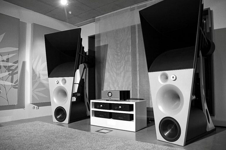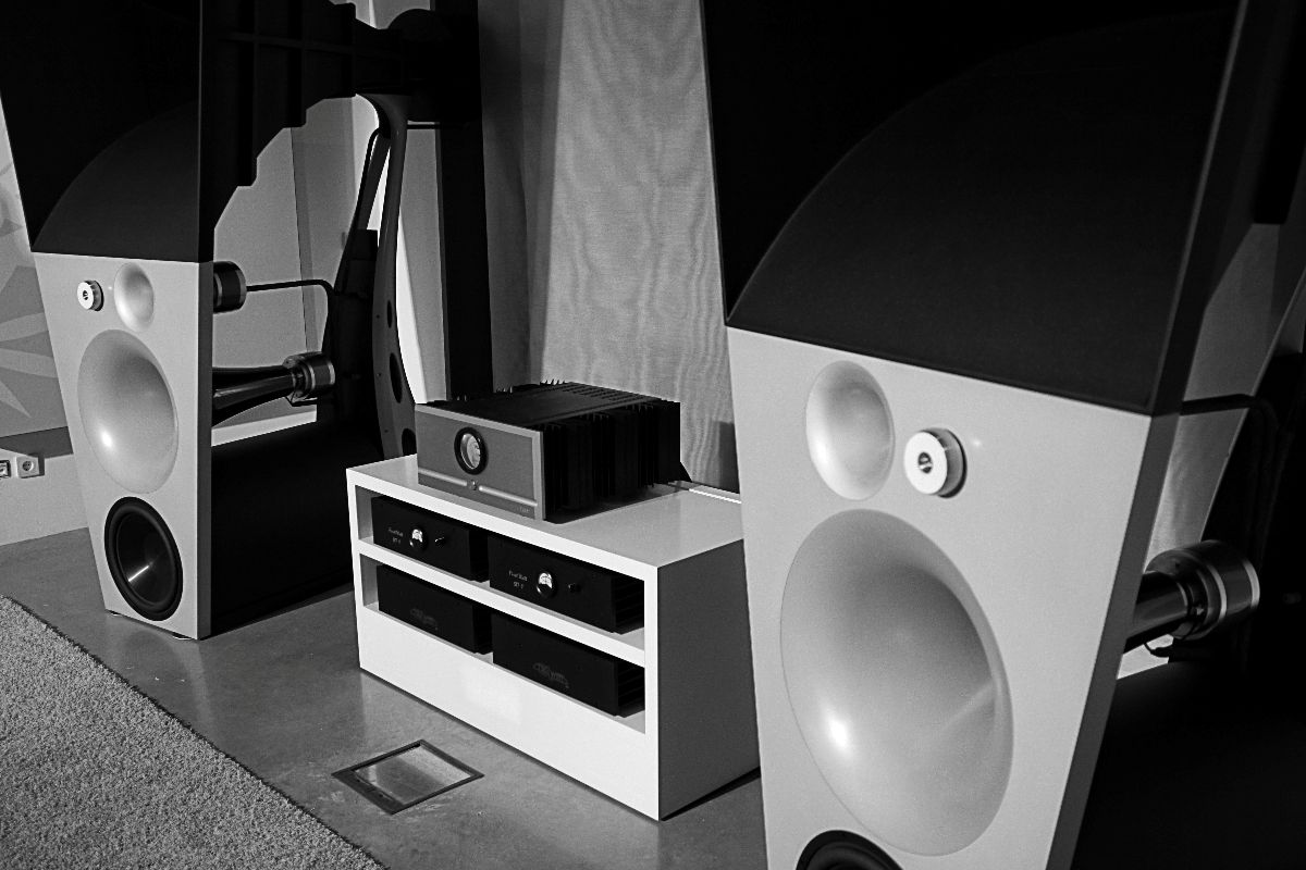 Die Ultimate III wurde angesteuert von einem – ebenfalls nur selten zu erlebenden – Verstärkerensemble von Nelson Pass. Dessen radikalen „First Watt SIT 1“ liefern nur winzige Leistungen, was im konkreten Fall aber schon für brachiale Spitzenpegel sorgen kann, vor allem aber klingen sie sagenhaft geschmeidig und sauber, was sie als Idealtriebwerke für das äußerst effiziente US-Horn qualifiziert. Als Musikquellen standen hochauflösende Audiodateien vom MySound-Netzwerk sowie ein Digital-Duo von EMM Labs zur Verfügung, sodass auch die mitgebrachten CDs abgespielt werden konnten. Als Vorverstärker diente das zweiteilige Topmodell von Pass Audio. Und obwohl so mancher mitgebrachter „Referenztitel“ in dieser gnadenlosen Geräte-Konstellation ein wenig an audiophilem Glanz verlor, was den TATSÄCHLICHEN Status der Produktion widerspiegelt, gelang es Magico & Co. trotzdem mühelos, aus den nunmehr geradegerückten Klangtatsachen eine mitreißende musikalische Performance zu formen.