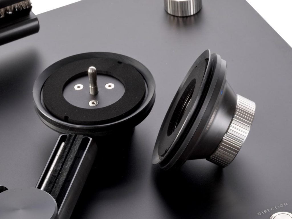 Puristisch heißt in diesem Kontext übrigens nicht spartanisch: Das „Twin“ in der Modellbezeichnung steht dafür, dass beide Plattenseiten in einem Rutsch gereinigt werden. Die Reinigung erfolgt oben und unten gleichzeitig, das lästige Umdrehen der Scheibe entfällt. Nach vorgefertigten Programm-Modi sucht man bei der Maschine, deren Standfläche nur wenig mehr als die Maße einer LP-Hülle einnimmt, vergebens. Weil diese laut Dieter Molitor die Flexibilität einschränken. Jede Platte hätte einen anderen Grundzustand und Verschmutzungsgrad. Diesem müsse man individuell begegnen können, meint Molitor.