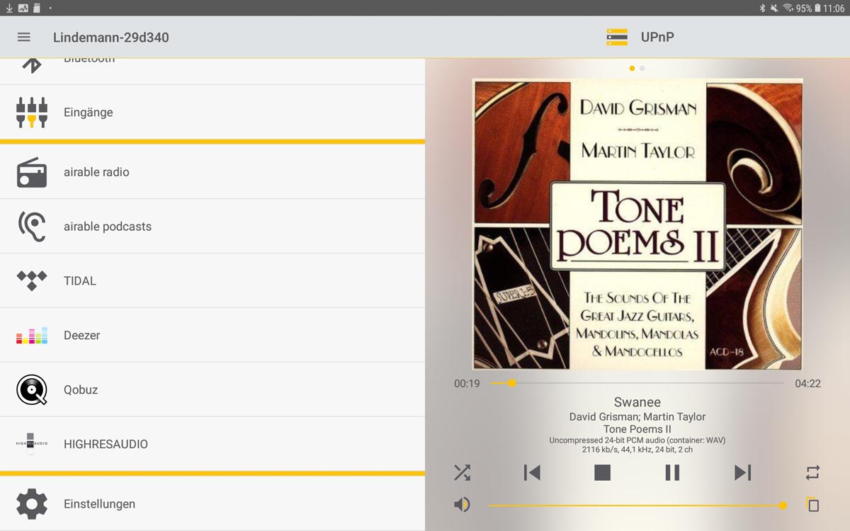 Streamingdienste: TIDAL, Qobuz, Deezer, HighResAudio, Spotify sowie Internet-Radio und Podcast