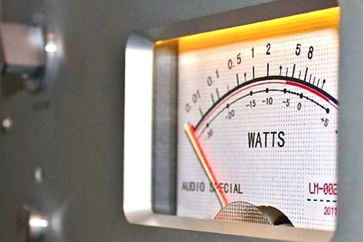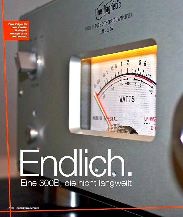 Auch in puncto Optik folgt der Line- Magnetic-Vollverstärker sicherlich nicht dem Mainstream. Rechnet man den großen Lochblech-Deckel hinzu, entspricht der großvolumige, schön „retromäßig“ Hammerschlaglackierte 30-Kilogramm-Amp fast einem Würfel. Als erster Hingucker dient ein beleuchtetes Zeigerinstrument, eine logarithmische Leistungsanzeige, deren Qualität weit über die der üblichen Schätzeisen hinausreicht. Mit Hilfe gleich zweier Zeiger offenbart die Skala, wie wenig Leistung von den insgesamt acht Watt der 300B tatsächlich benötigt wird; an meiner 96-dB-Rondo von A23 schlenkert die zugegeben träge gestaltete Anzeige praktisch nie über die Ein-Watt-Marke hinaus! Wer das nicht so genau wissen will, kann die Beleuchtung des großen Instruments auch abschalten, übrigens genauso wie eine äußerst mild ausgelegte Gegenkopplung. Bei mir stand dieser Schalter hartnäckig auf „Off “, allerdings ist die Gegenkopplung kein Fehler bei manchem Lautsprecher. Ein weiterer Kippschalter nimmt auf Wunsch auch noch eine 12AX7(ECC83)- Eingangsstufe aus dem Signalweg und öffnet ohne Pegelregler den direkten Weg zur 310A/300B-Combo. Die Eingangsempfindlichkeit des so zur reinen Endstufe mutierten SE-Vollverstärkers liegt dann laut Hersteller bei einem Volt. Inklusive der 12AX7 muss man dagegen mit rund 200 Millivolt (0,2 V) rechnen und hat – vom Eingang abgepuffert – auch den Pegelregler nebst Dreifach-Eingangswahlschalter zur Verfügung. Eine durchweg vernünftige, weil eben nicht übertrieben puristische Auslegung, zu der auch drei Hochpegel-Eingänge zählen.
