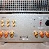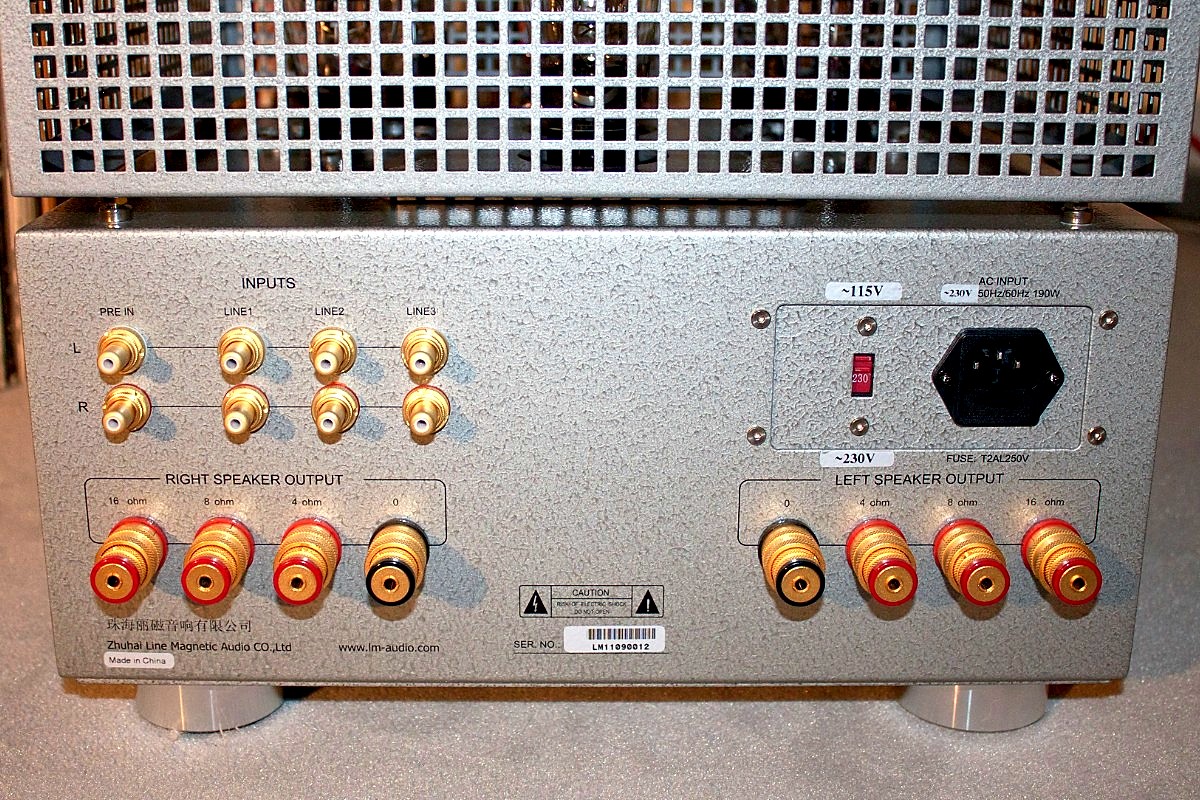 Aber zurück zum eigentlichen Thema, dessen Anschlussfeld die heutzutage wohl unvermeidlichen Monster-Polklemmen aufweist, sachgerecht aufgeteilt in Vier-, Acht- und 16-Ohm-Sektion (das Teamwork mit meiner nun „zweiwegigen“ Rondo macht mich neuerdings zum Acht-Ohm-User.) Ebenso prächtig fallen die hartvergoldeten, deshalb matt aussehenden Cinchbuchsen aus, allerdings sind diese schönen Dinger modisch, will heißen so dick geraten, dass man die Stecker zwar drauf, aber nur schwer wieder runter bekommt. Das gefällt wahrscheinlichen allen HiFi-Fans, nur meiner einer hat dazu eine andere Meinung. Geteilte Ansichten gibt es auch zu einer ganz anderen Sache, die sich auf der Oberseite des Chassis manifestiert: ein kleines Löchlein mit einem Poti darunter, dazu der Aufdruck „Hum Balancer“. Eingeweihte wissen jetzt sofort: Wechselstromheizung an der 300B. Die einen schreien jetzt Bravo, die anderen legen sofort die Stirn in Sorgenfalten. Tja. Wechselstromheizung. Sozusagen die reine Lehre aus der Triodenbibel, das Credo härtester Freaks, die den dadurch unvermeidlich verursachten winzigen Restbrumm mit dem seligen Lächeln von Radiosammlern quittieren, die einen 1935er Telefunken einschalten. Nicht wegzuleugnen, solche Trioden waren einst für Wechselstromheizung gedacht und gemacht. Tatsache auch, es klingt so tatsächlich einen Hauch besser. Tatsache weiterhin, der Preis ist ein kleiner, nicht lautstärkeabhängiger Restbrumm im Lautsprecher, den man frohgemut ignorieren oder fortan zum Nervenkrieg erklären kann. Mich wundert nicht, dass die auf Klang und Originalität bedachten Macher von Line Magnetic konsequent an der antiquierten Methodik festhalten, anstatt der Triode eine der üblichen Gleichspannungsheizungen zu spendieren. Das Ganze ist eine Glaubensfrage und über Glaube lässt sich bekanntlich nicht streiten. Ich als Berichterstatter habe jetzt die Wahl, diese Geschichte zum „Knackpunkt“zu erklären (oh Gott, der Geräuschspannungsabstand!) oder mich entspannt zurückzulehnen und zu erklären, dass ich an meinem Hörplatz mit meinem Lautsprecher davon nichts mehr wahrnehme. Und wissen Sie was? Genauso mache ich das jetzt. Signal-to-Noise-Fanatiker (zu denen gehöre ich auch fallweise) sollen sich doch einen D-Verstärker kaufen. Über deren merkwürdiges Rauschverhalten sieht die ach so begeisterte Hightech-Fraktion ja auch gerne geflissentlich hinweg …