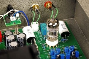 In der Röhren-Ausgangsstufe des LM-215CD werkelt eine 12AU7/ECC82 mit Line-Magnetic-Aufdruck. Nachdem acht Inbusschrauben gelöst sind, gibt der bedämpfte Gehäusedeckel den Zugriff auf den Glaskolben und die restlichen Innereien frei. Ein vernünftig dimensionierter Trafo ist für die Stromversorgung des Gerätes zuständig. Von der gelegentlich etwas nachlässigen Verarbeitungsqualität chinesischer HiFi-Produkte kann beim LM-215CD überhaupt keine Rede sein. Innen wie außen macht der Player einen sehr anständigen Eindruck. Sein Vollmetall-Gehäuse ist fürs Geld überaus massiv gebaut. Gleiches gilt für die schwere Metallfernbedienung, die die überschaubaren Bedien-elemente auf der Front des Gerätes durch nützliche Extras wie eine Zehnertastatur und eine Repeat-Funktion ergänzt. Was es mit der „Mode“-Taste auf sich hat, klären wir gleich Die Knöpfe am Gerät besitzen eine stattliche Größe und einen satten Druckpunkt und sorgen für eine angenehme Haptik, die sich äußerst wohltuend von den fitzeligen Schalterchen anderer CD-Player abhebt. Dass sich die Entwickler auch scheinbar nebensächlichen Details zuwenden, zeigt sich an der markierten Netzphase, am Display und an der LED für die Betriebsanzeige. Aufmerksame Leser wissen, dass ich an der übertriebenen Lightshow vieler HiFi-Komponenten leidenschaftlich gerne herumnörgele. Liebe Mitbewerber: Wenn ihr an euren Geräten schon keine Möglichkeit implementiert, die Lichtquellen zu dimmen oder abzuschalten, dann nehmt euch doch bitte ein Beispiel am Line Magnetic LM-215CD. Sein Display ist hell genug, dass man es auch vom anderen Ende des Raumes problemlos ablesen kann, und leuchtet trotzdem so dezent, dass es im Dunkeln keine Schatten wirft. Die LED auf der Front orientiert sich nicht nur in Sachen Intensität am zurückhaltenden Display, sondern besitzt mit ihrem angenehmen Orangeton auch noch eine mit den roten Leuchtziffern bestens harmonierende Farbe. Vorbildlich.