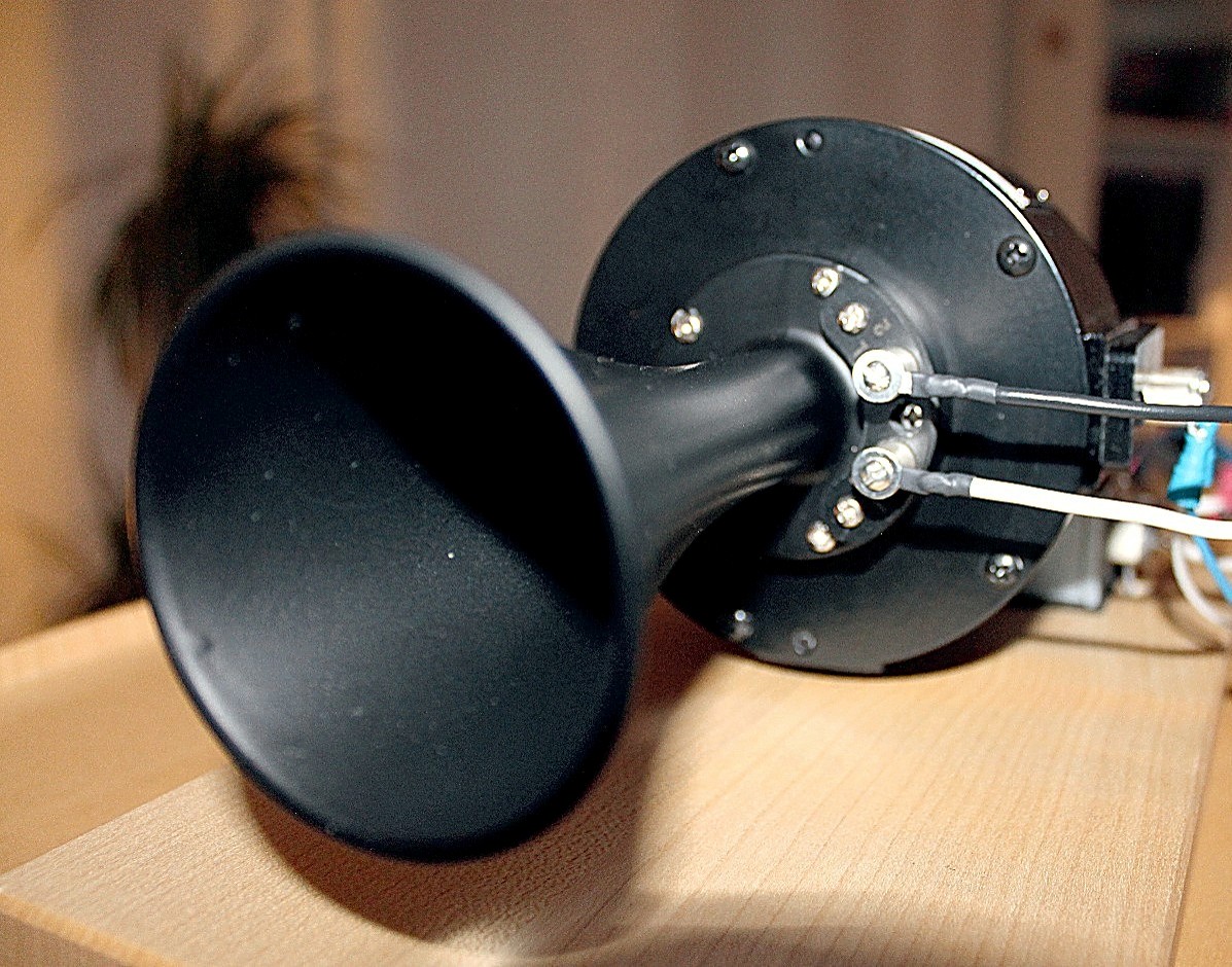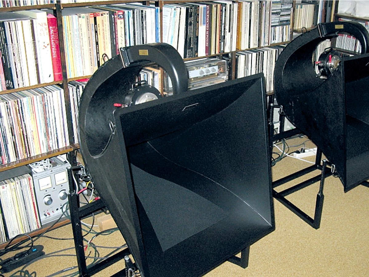 Damit ist die imposante Vorstellung aber noch lange nicht zu Ende, denn der weite Horizont, der sich nun mit immenser Strahlkraft schier cinematografisch hinter der Lautsprecherebene auftut, reißt den Breitbänder förmlich mit, als höre man einen völlig neuen Lautsprecher. Der nun in seiner Gesamtheit schon furchterregend an reiner Geschwindigkeit zugelegt hat, ein Effekt, der seltsamerweise bis hinunter zu tiefen Frequenzen wirksam ist, die vom 597 in puncto Facettenreichtum mehr als nur profitieren. Glücklicherweise bleiben aber die Klangkörper in der vom Breitbänder gewohnten Homogenität erhalten, hier teilt sich nichts in „zwei Wege“, und die enorme, völlig unverzerrte Präsenz des Klanges mutiert trotz der nun profund und lässig in den Raum geworfenen, akkuraten Hochton-Energie nicht zur Nervigkeit, obwohl die Farbenpalette des für einen Breitbänder ohnehin höhenstarken Phy-Hp extrem dazugewonnen hat. Wie man damals dem 597 die Marotten späterer mit Hornvorsatz bestückter Hochtöner abgewöhnt, nein, falsch, gar nicht erst anerzogen hat, bleibt mir ein Rätsel. Bei ähnlichen Konzepten, die mir früher vor die Ohren kamen, handelte es sich fast durchweg um doofe (pardon!), einfach nur laute Tröten, die mit HiFi wenig bis gar nichts zu tun hatten, um irgendwie tönende Karikaturen, gegen die selbst Metallkalotten mit ihrem latent stählernen Timbre geradezu als Wohltat durchgingen.