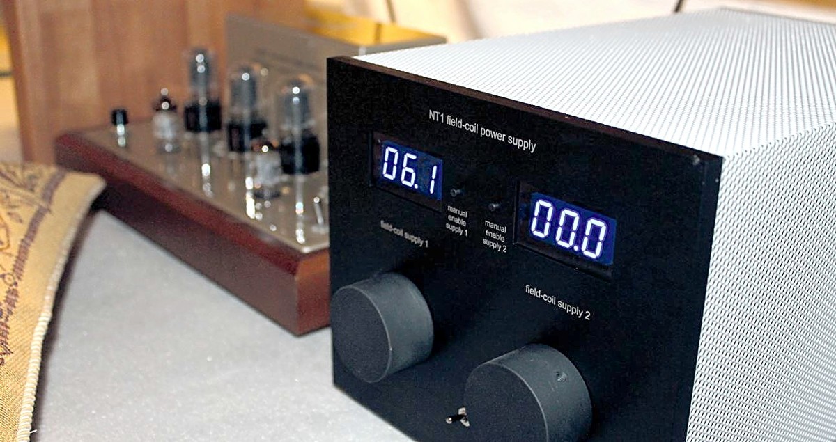 Für den im Vertrieb von Auditorium 23 befindlichen Line Magnetic 597 benötigt man eine 7-V-Stromversorgung, die pro Hochtöner etwa ein Ampere liefern kann; denkbar wären hier einfache einstellbare Gleichspannungs-Netzgeräte bis hin zu technisch und klanglich deutlich luxuriöseren Optionen wie etwa das Doppel-Netzteil von Acoustic Plan. Claus Jäckle hat alle Belange von Kennern der Materie berücksichtigt. Die nämlich halten simple Netzteile zur Feldspulenversorgung fremderregter Chassis – unter „simpel“ versteht man in diesen Kreisen etwa elektronische Spannungsregler – für Unfug und verweisen ernsthaft auf den erstaunlicherweise hohen Einfluss, den die „Art“ der Stromversorgung auf den Klang ausübe. In der Praxis läuft es darauf hinaus, hier besser „alte“ Konzepte zu benutzen, weshalb historische Selen- Gleichrichter nebst Rheostaten (sehr präzise einstellbare, belastbare Drahtwiderstände) in einer rein passiven, also ungeregelten Netzteilkonfiguration zum Einsatz kommen. In C. Jäckles Netzteil stehen außerdem zwei getrennt einstellbare Versorgungen für insgesamt vier Chassis zur Verfügung, womit parallel zu den beiden Hochtönern auch zwei weitere fremderregte Treiber bedient werden können. Große Displays zeigen die Spannung an, mit der man gerne etwas „spielen“ darf; tatsächlich ist der Klang fremderregter Treiber so um ein gewisses Maß beeinflussbar, keinesfalls sollte jedoch die Nennspannung von sieben Volt dabei überschritten werden. Eine leichte Erwärmung des Treibers ist übrigens normal und rührt von der aktiven Feldspule her. Für das Teamwork mit dem Phy-Hp, der vorerst unbeeinträchtigt bis an seine „natürlichen“ oberen Grenzen durchlaufen durfte, wurde dem LM 597 mithilfe eines Kondensators eine passive 6-dB-Weiche vorgeschaltet, die zugegeben recht freakige alte Ölpapier-Kapazität fand ihren Platz gleich hinter dem Hochtöner, dessen ziemlich fummelige kleine Schraubanschlüsse den ein oder anderen Nerv kosteten. Eingeweihte Kreise bescheinigen diesem Kondensator, dessen Typ ich nur unter vier Augen verraten darf, schier überirdische Fähigkeiten 🙂 Ich bin jedoch sicher, dass man diesbezüglich auch deutlich „moderner“ fündig werden kann, etwa bei Mundorf . Den trotz des mit 96 Dezibel bereits ziemlich „lauten“ Phy-Hp immer noch vorhandenen Wirkungsgrad-Unterschied habe ich anfangs in Kauf genommen, da mir letztlich ohnehin Bi-Amping über regelbare Endstufen vorschwebte; später kam in der Passivvariante ein sogenannter L-Regler hinzu, der freilich auf die Impedanz des 597 ausgelegt sein muss (ein Online- Rechner hierzu: www. sengpielaudio. com). Beim Experimentieren hätte ich dann fast vergessen, dass die resultierende Impedanz der nunmehr parallel geschalteten Chassis aus der 16-Ohm-Rondo eine 8-Ohm- Box macht, also bitte den Endstufen- Anschluss wechseln!