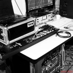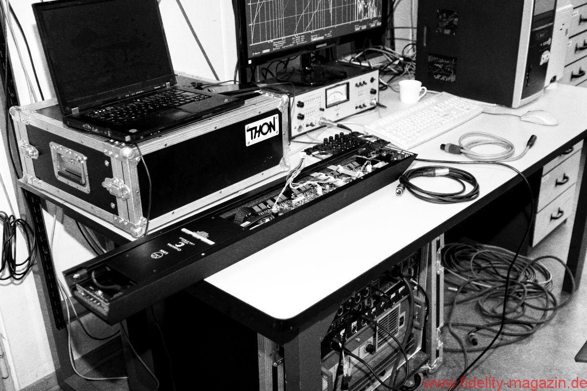 Die Verkabelung der aktiven Akubarik ist übrigens ein Traum. Früher konnte ein ganzer Tag allein für die korrekte kreuzungslose Verkabelung einer aktiven Linn-Anlage draufgehen, heute wird ein XLR-Signalkabel und ein Netzkabel am unteren Ende der Elektronik eingesteckt – fertig! Durch ein Lochgitter obenauf zeigen rote und blaue LEDs den aktuellen Betriebsstatus an. Hier lassen sich auch ein paar technische Eckwerte (etwa Tiefbass-Filterung und -Pegelabsenkung) einstellen. Ein Kinderspiel und im konkreten Fall gar nicht nötig. Ich lasse alles auf null.