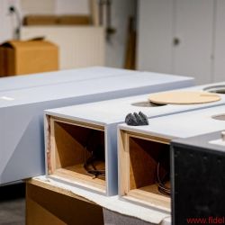 Besonderheiten: extrem resonanzarmes Sandwichgehäuse, Koaxial-Chassis, modulare Design-Elemente (Frontplatte, Bodenplatte, Hardware)
