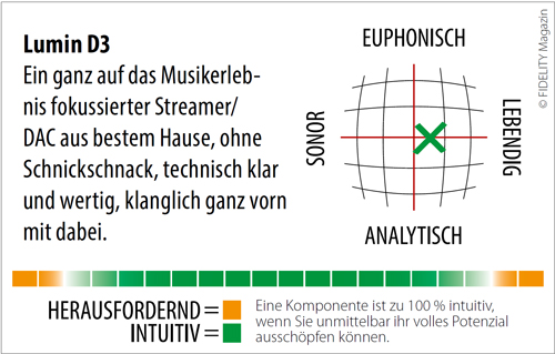 Der Lumin D3 ist ein ganz auf das Musikerlebnis fokussierter Streamer/DAC aus bestem Hause, ohne Schnickschnack, technisch klar und wertig, klanglich ganz vorn mit dabei.