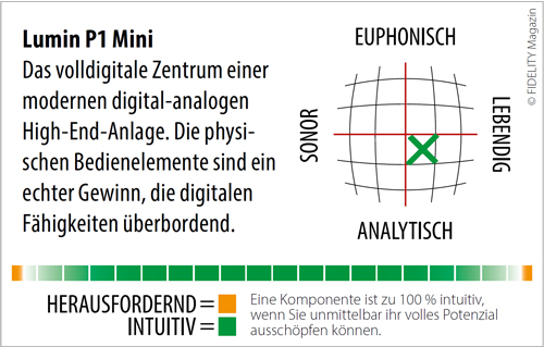 Der Lumin P1 Mini ist das volldigitale Zentrum einer modernen digital-analogen High-End-Anlage. Die physischen Bedienelemente sind ein echter Gewinn, die digitalen Fähigkeiten überbordend.