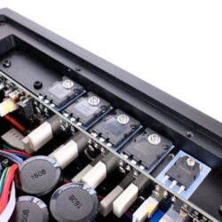 Besonderheiten: symmetrischer Aufbau, dynamische Ruhestromregelung, symmetrischer und unsymmetrischer Anschluss möglich, Umschaltung zwischen Betriebsmodi Stereo/Doppelmono/Bridged