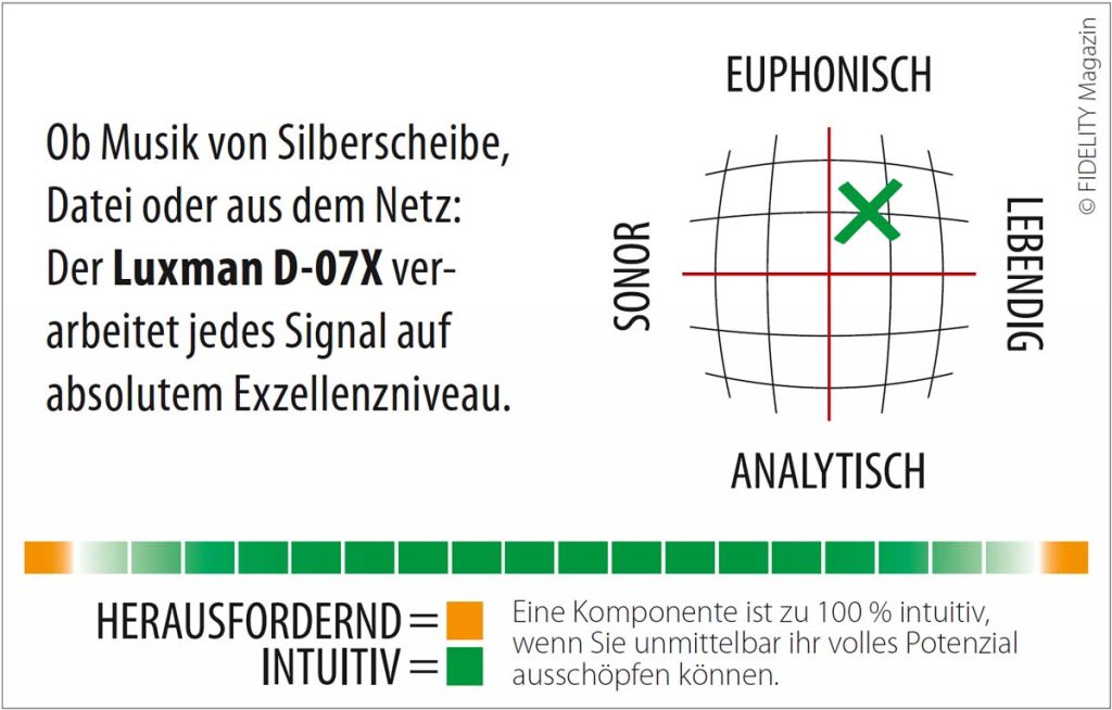 Was also ist Luxus? Sicher ist es die Entscheidungsfreiheit, wie man seine Musik am liebsten hört. Der Luxman D-07X nimmt es auf mit allem, was die Archivbestände hergeben, und ist in den unterstützten Formaten eine zukunftssichere Investition (und bis zu einer bestimmten Grenze wahrscheinlich auch erdbebensicher). Vor allem aber tut er dies in einer Art und Weise, dass man sicher sein kann, dass es hochwertiger nicht mehr geht.
