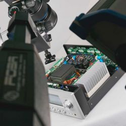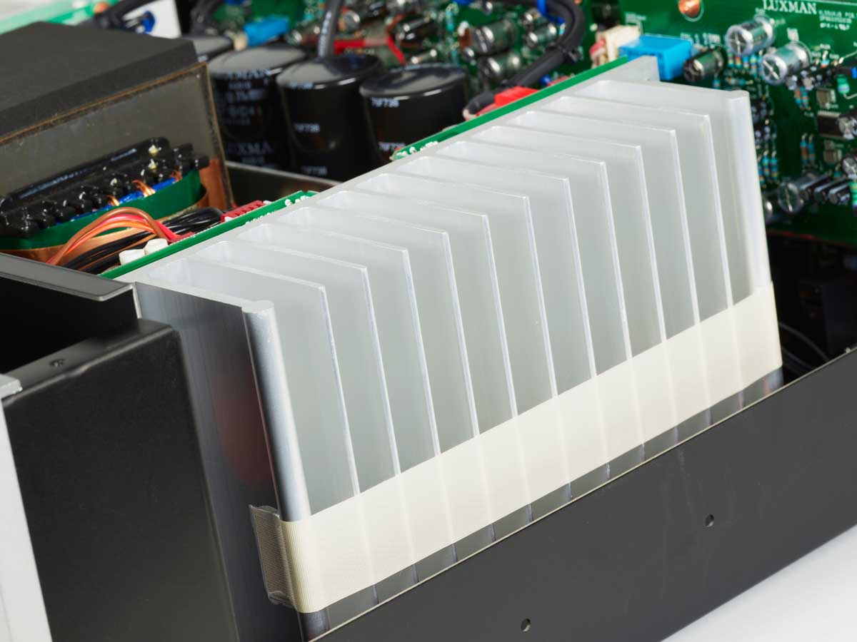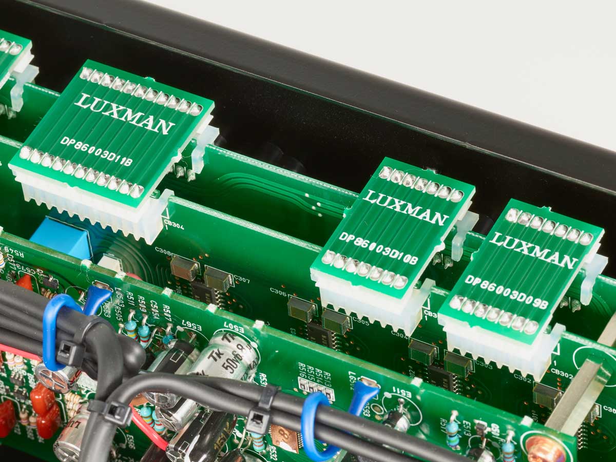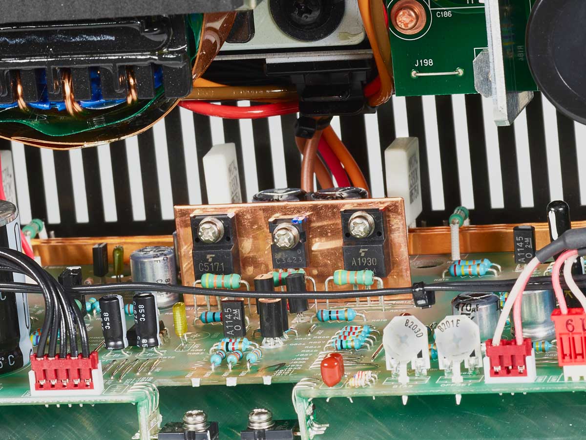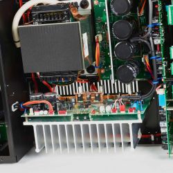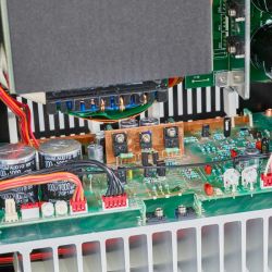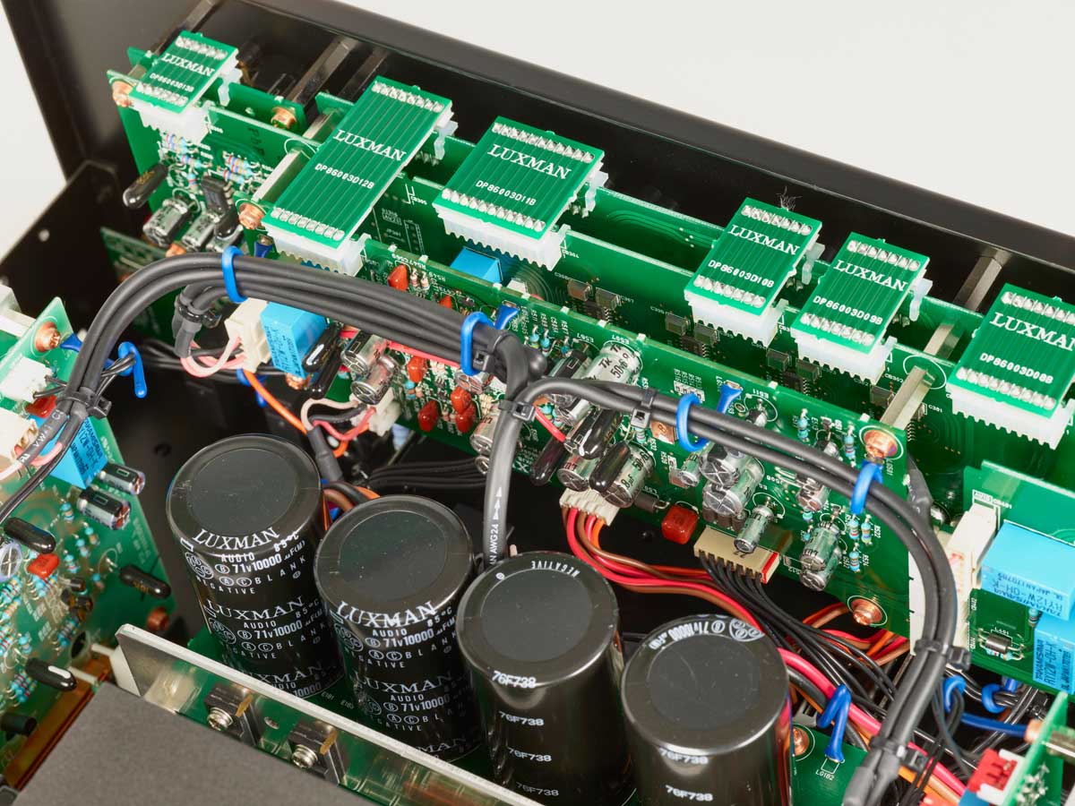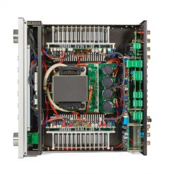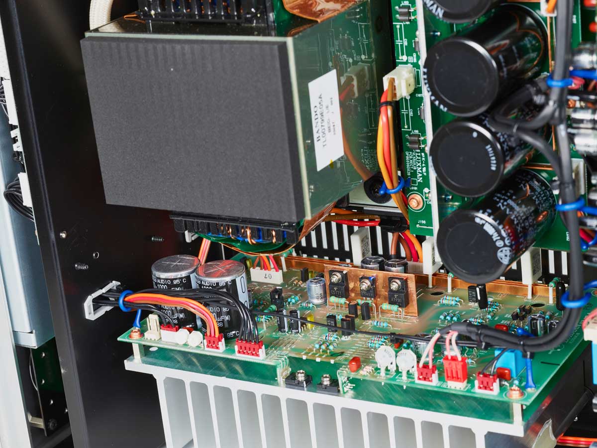 Im Inneren des Class-AB-Verstärkers befindet sich eine Mischung aus Bewährtem und Neuem. Besonders stolz ist man auf eine spezielle Gegenkopplung, die unter der Bezeichnung „ODNF“ firmiert und nunmehr in der Version 4.0 implementiert wurde. Das Buchstabenkürzel steht für „Only Distortion Negative Feedback“ und bedeutet, dass ausschließlich verzerrte Audioanteile zurückgeführt werden. Die neue Schaltung soll Verzerrungen wesentlich schneller und genauer erkennen und im Ergebnis mehr Bandbreite und ein verbessertes Signal-Rausch-Verhältnis liefern. Ferner hat man der Vorverstärkereinheit eine neue diskrete Pufferschaltung in der Ausgangsstufe spendiert, wie man sie ähnlich bereits in der ungleich teureren Luxman-Vorstufe C-900u findet.