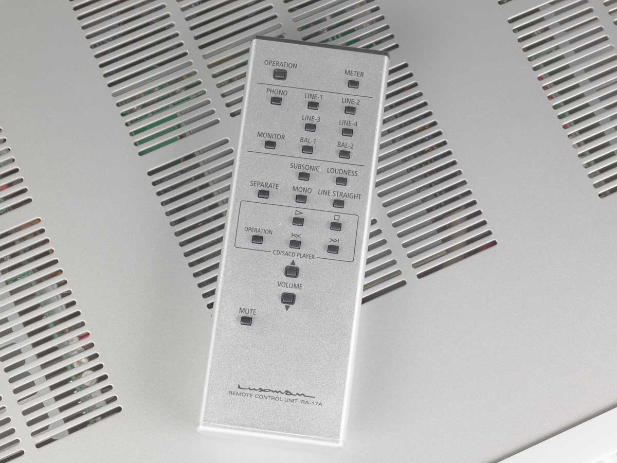 Zwischen dem großen Quellenwahlregler links außen und dem Pegelsteller rechterhand fallen die Potis der Klangregelung ins Auge. Mit der Debatte, ob solcherlei unter highendigen Gesichtspunkten überhaupt erlaubt sei, lassen sich traute Runden am Stammtisch in Windeseile sprengen, denn dann werden die Argumente mitunter emotional. Daher nur so viel: In einigen Hörsituationen erwies sich die Anpassung von Höhen und Bässen mittels der Klangregelung als richtige Maßnahme, wobei weite Teile des Tests unter Umgehung der Klangregelung („Line straight“) erfolgten. Lediglich für die Loudness-Funktion, die sich über die Fernbedienung aktivieren lässt, fand sich im Testhaushalt kein geeignetes Hörmaterial. Ferner steht zur Einstellung der Balance ein Drehregler zur Verfügung, MM und MC lässt sich mit einem gleich aussehenden Drehschalter umstellen, ebenso lässt sich die „Rec out“-Funktion ein- und ausschalten sowie der Betrieb der Schallwandler (A oder B oder beides oder aus) festlegen. Ein Drucktaster für den „Separate“-Betrieb, in dem der Luxman als Endverstärker fungiert und das Vorverstärkersignal extern via „Main in“ bezieht, ein Monitor-Taster und ein Taster zur Umgehung der Klangregelung komplettieren zusammen mit dem Kopfhörerausgang die Ausstattung des Frontpanels.