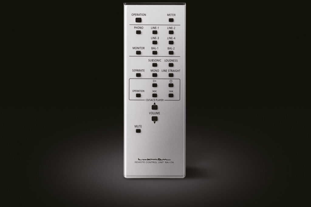 Eine Vielzahl von Einstellungsmöglichkeiten befindet sich direkt auf der eleganten Frontplatte des Verstärkers. Die Klangregelung ist mit massiven Aluminium-Drehreglern gestaltet und umfasst neben Bass und Höhen auch einen neuen Regler für die Mitten, der im Frequenzbereich von Gesang und Lead-Instrumenten wirksam ist. Darüber hinaus sind eine klassische Loudness-Funktion und ein Balance-Regler vorhanden. Wer eine unverfälschte Wiedergabe wünscht, kann die gesamte Klangregelung über Line Straight umgehen. Alle Einstellungen können bequem vom Hörplatz aus vorgenommen werden. Die ergonomische und hochwertige Aluminium-Fernbedienung ermöglicht die intuitive Steuerung sowohl des Verstärkers als auch aktueller Luxman-CD-Player.