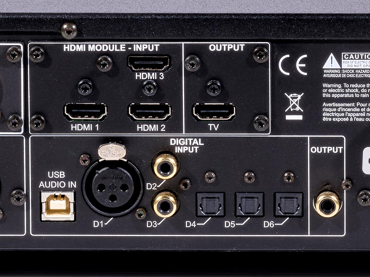 Optionale Eingänge digital: HDMI-Modul: 1 x HDMI-Ausgang, 3 x HDMI-Eingang (24/192)
