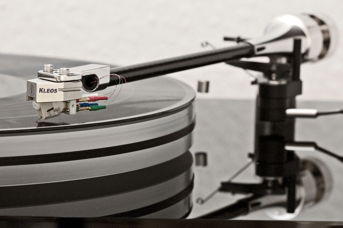 Lyras jüngster Tonabnehmer-Generation gehören vier nach dem Moving-Coil-Prinzip arbeitende Systeme an. Den kleinsten gemeinsamen Nenner der Modelle Delos, Kleos, Etna und Atlas bildet Lyras „New Angle Technology“. Dabei ist der Spulenträger in seiner Ausrichtung in Bezug auf das Magnetsystem so voreingestellt, dass sich erst mit Absenkung des Systems auf die Platte, also unter dem aufs hundertstel Gramm genau angegebenen empfohlenen Auflagegewicht die vom Konstrukteur gewollte Generator- Geometrie ergibt. Lyra will hier eine Lösung gefunden haben, die Nichtlinearitäten in der horizontalen und vertikalen Beweglichkeit des Spulenträgers auf dem Dämpfungsgummi ausschließt. Eine weitere Gemeinsamkeit aller aktuellen Lyra-Systeme ist die Magnetanordnung. Jonathan Carr setzt auf zwei scheibenförmige (manche mögen sagen: ringförmige) Magnete unmittelbar vor und hinter dem Spulenträger. So ergibt sich ein offenes, ganz ohne Polplatten auskommendes Magnetsystem, das Carr eben wegen der Abwesenheit der – wie er sagt – einen enormen klanglichen Einfluss ausübenden Eisenteile bevorzugt. Das Testobjekt Kleos kommt wie alle Lyra-Systeme jüngeren Datums als minimalistisches „nacktes“ System daher. Der recht massive Systemträger besteht aus einer besonders festen Aluminiumlegierung. Um dem Metall jegliche Resonanzfähigkeit auszutreiben, bekommt es von hinten zwei zylindrische Bohrungen verpasst. In diese wird jeweils ein Zylinder aus Bronze eingepresst. Die Kombination zweier unterschiedlicher Metalle sorgt in Verbindung mit dem Druck, unter dem sie verbunden wurden, für eine äußerst effektive Eigenbedämpfung. Die Kontaktfläche zum Headshell, die beim kleineren Bruder Delos plan ist und damit vollflächig aufliegt, wurde beim Kleos bis auf einen schmalen Steg im Bereich der Montagelöcher abgefräst. So wird auf einer kleineren Auflagefläche ein höherer Anpressdruck erreicht – auch das soll zum klanglichen Vorteil gereichen. Den Generator des Kleos vervollständigt ein quadratisches vergoldetes Eisenplättchen, auf das die Spulen aus feinem hochreinem Kupferdraht gewickelt sind. Der Nadelträger ist ein Boron-Stäbchen; an dessen Ende sitzt ein Diamant mit nach Lyra-Vorgaben modifiziertem Line-Contact-Schliff.