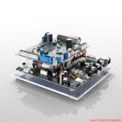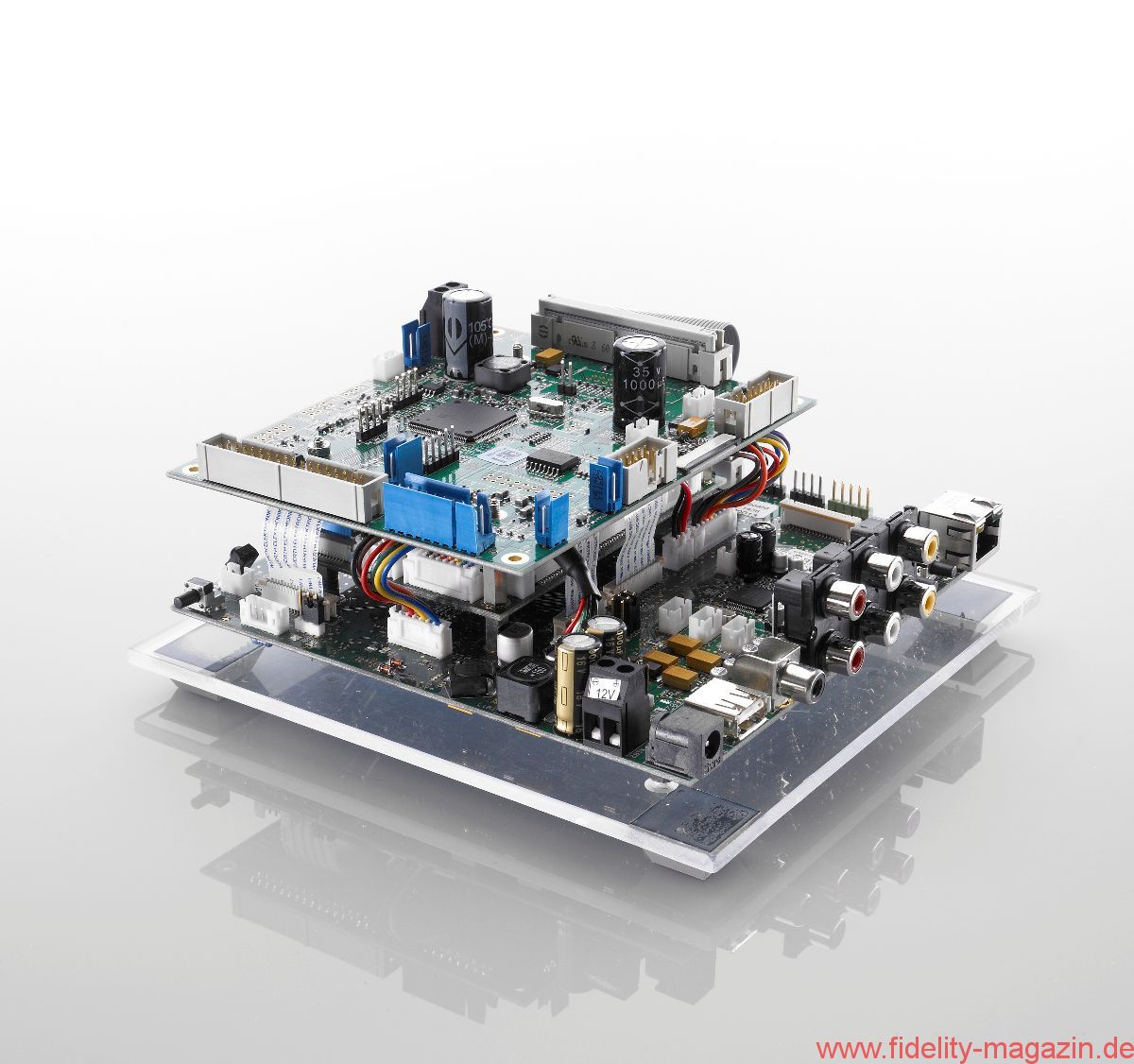 Und das kann einiges sein, denn der im besten Sinne wertvolle, knapp 12000 Euro teure Lyravox Stereomaster SM3-150 ist im Kern das omnipotente Kernstück eines leistungsfähigen Heimnetzwerks, mit dem er sich via Ethernet oder WLAN kinderleicht verbindet. Außerdem findet sich an der Front der Schlitz eines zuverlässigen CD-Laufwerks (von TEAC), das mit schnellen Einlese- und Titelsprungzeiten sowie unerschütterlicher Abtastsicherheit zu gefallen weiß. Übrigens auch dann, wenn nebenan gerade die Straße aufgerissen wird und das ganze Haus zu schwingen beginnt. Der Stereomaster-Besitzer hält solcherlei akustischer Unbill mit rund 1500 (eintausendfünfhundert!) Watt Systemleistung aus beruhigend stabilen Class-D-Endstufen vom Spezialisten Pascal entgegen, die insgesamt nicht weniger als zwölf erstklassige Hochleistungstreiber in dieser zeitgemäßen „Musiktruhe“ ansteuern.