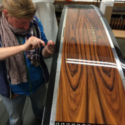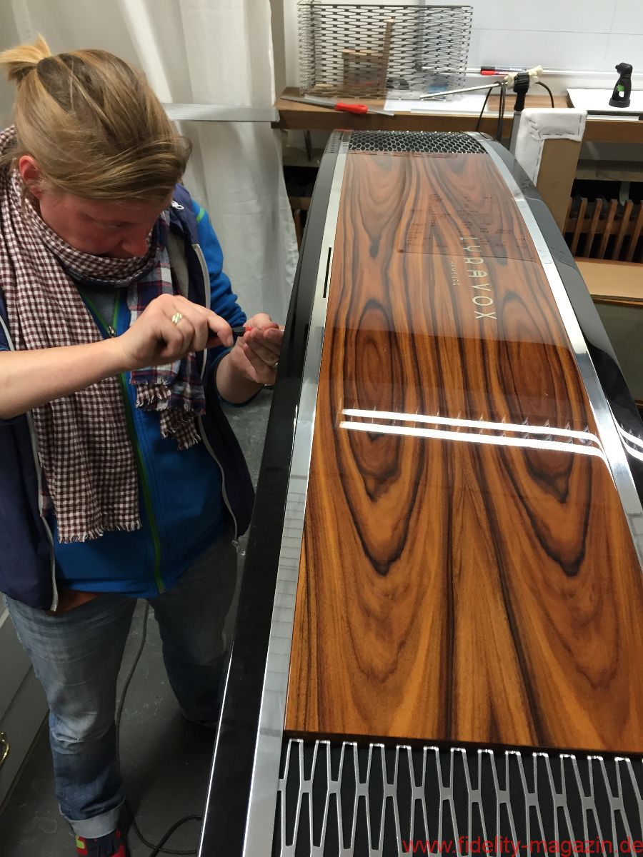Mit einer solchen Lösung spart man zudem ein Gutteil jener Kisten ein, die ansonsten Highenders Hausaltar ausmachen. Anstatt ein halbes Dutzend Einzelkomponenten aufzustellen, die optisch und technisch mehr oder weniger gut zueinander passen, jede Menge Platz fressen und mit Kabeln verbunden werden wollen, benötigt man nur noch diesen anderthalb Meter breiten Alleskönner, der an der Wand gegenüber dem üblichen Hörplatz optimal aufgehängt wird. Durch das grundsätzlich zurückhaltende No-Nonsense-Design (das allerdings auch in prachtvollen Sonderversionen lieferbar ist – die Hamburger Manufaktur erfüllt gern auch exotische Wünsche) fällt der Lyravox niemals unangenehm auf. Dank seines zentralen Displays sieht der Musikfreund dennoch stets, was gerade gespielt wird.