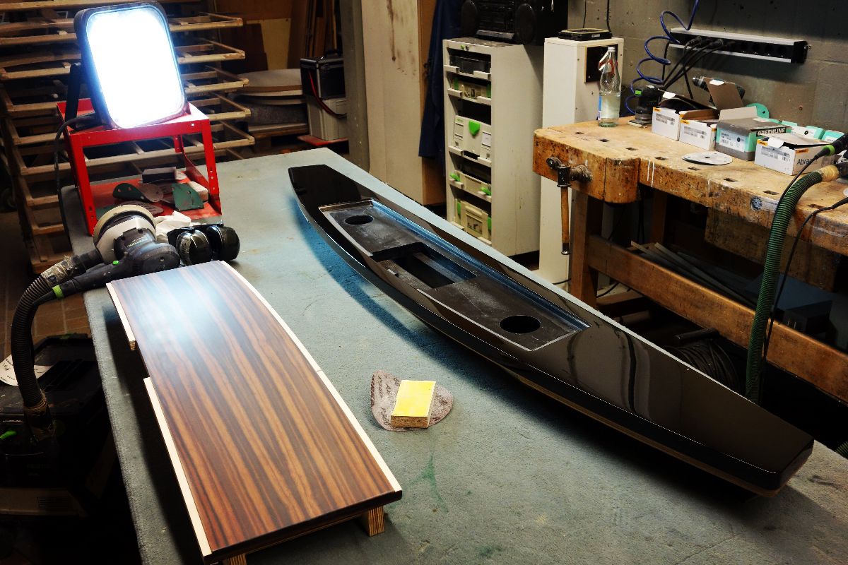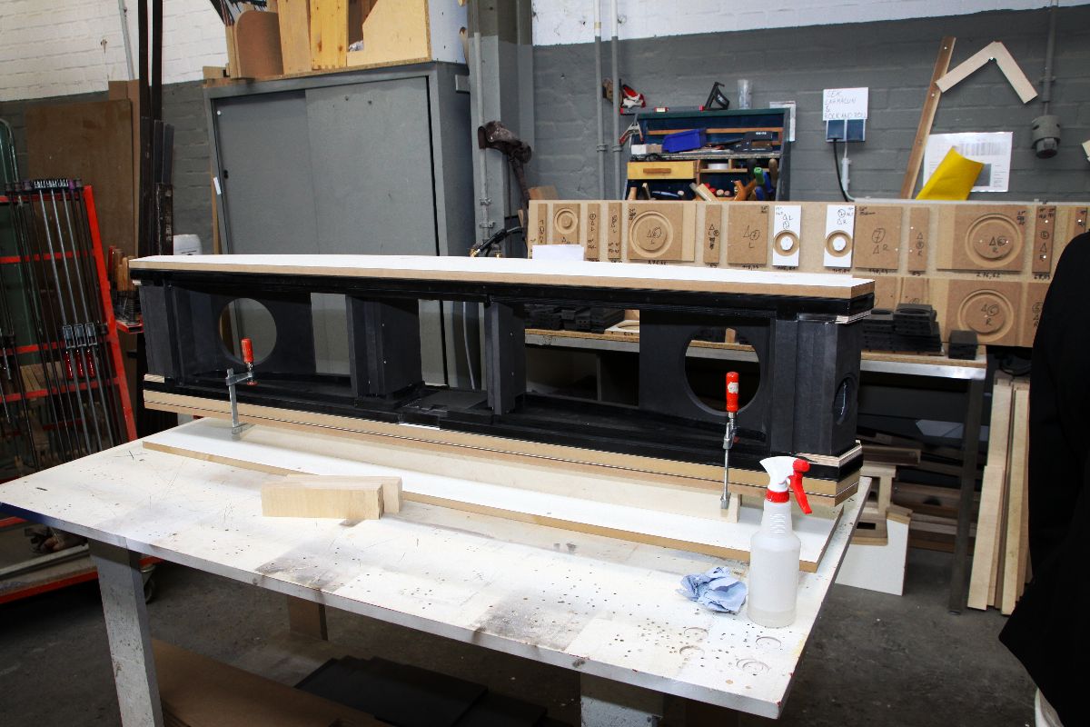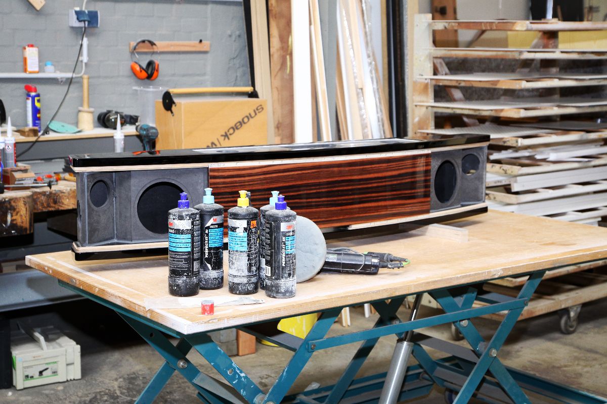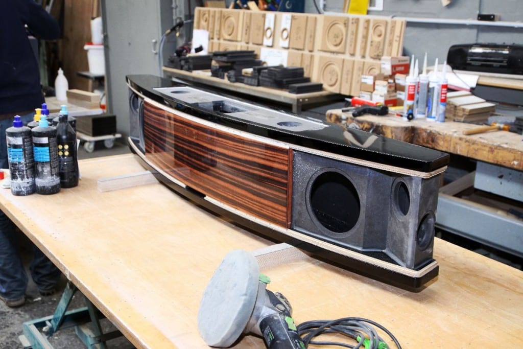 Alle Stereomaster-Modelle werden in Hamburg einzeln von Hand gefertigt, wobei Lyravox feinste Furniere, echten Klavierlack und aus dem vollen Material gearbeitete Metallkomponten einsetzt. Man ist dazu eine Partnerschaft mit einer der hochkarätigsten Tischlereien Hamburgs eingegangen: Bei Snoeck?Wilke entstehen die Stereomaster-Gehäuse in geradezu liebevollster Handarbeit. Hier trifft Moderne in Form riesiger CNC-Fräsen auf Tradition in Form von echtem Polyester-Klavierlack. Der dazu betriebene handwerkliche Aufwand macht beinahe sprachlos: So fertigt die High-End-Tischlerei für den Stereomaster beispielsweise ein eigenes gebogenes Schichtholz in großen Pressen an. Wohlgemerkt: Hier wird kein fertiges Schichtholz gebogen, hier wird vielmehr ein eigenes Schichtholz für den Stereomaster hergestellt! Auch die Lackierung ist schlicht eine Sensation, handelt es sich dabei doch nicht um den üblichen Hochglanzlack, sondern tatsächlich um echten Klavierlack auf Basis von mindestens acht Polyesterlack-Schichten. Diese werden immer und immer wieder angeschliffen und am Ende auf Hochglanz poliert – ein kontemplativer Vorgang, der aufsummiert Wochen dauert und wahrhaft meisterliche Fähigkeiten voraussetzt. Das Ergebnis dieser fast unglaublichen Bemühungen ist dann aber auch über jeden Zweifel erhaben: Die makellosen Oberflächen von Lyravox entsprechen nämlich denen, für die auch die legendären Pianos und Flügel aus der Hansestadt berühmt sind. Und selbstverständlich fertigt die ambitionierte Manufaktur aus Hamburg alle nur denkbaren Variationen in puncto Oberflächen und Ausführungen auch individuell nach Maß.