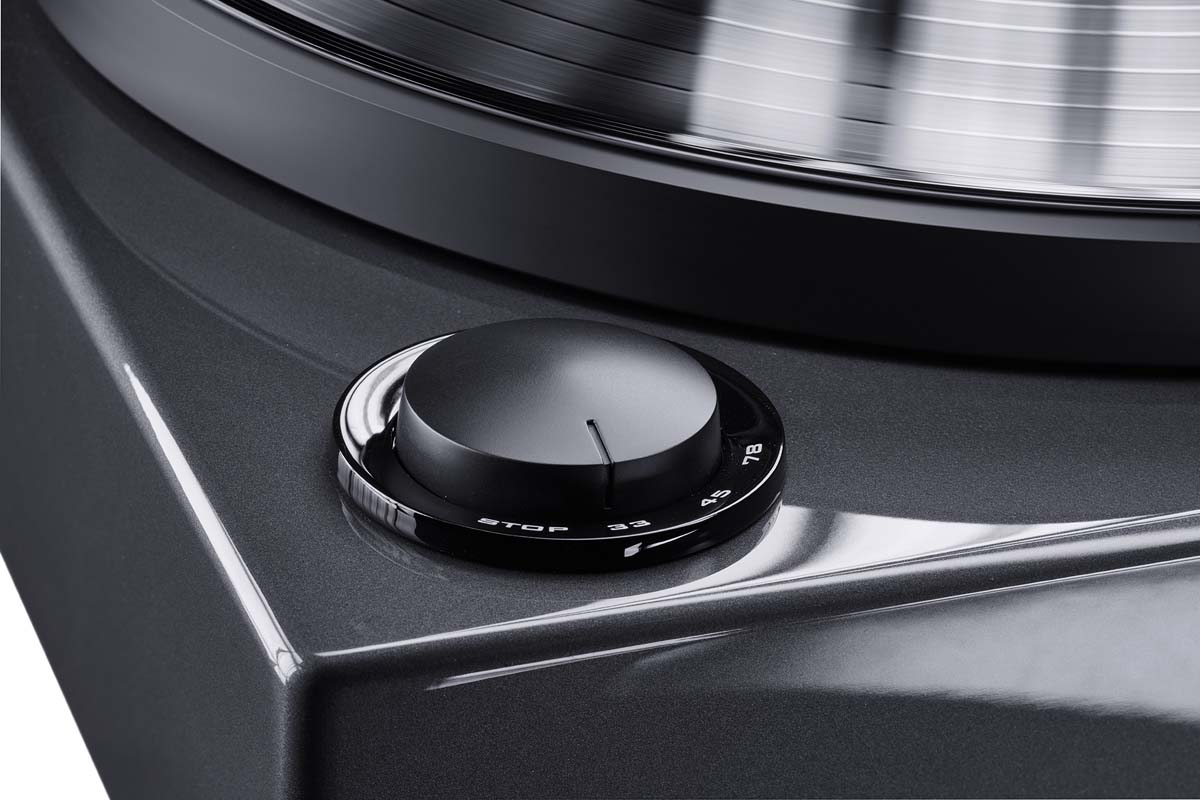 Die Funktionalität leidet nicht unter den optischen Aspekten. Die Steuerung des Laufwerks erfolgt über einen Drehknopf in der linken vorderen Ecke des Laufwerks, also mit gebührendem Abstand zum empfindlichen Tonabnehmer. Sämtliche Anschlüsse befinden sich komfortabel angeordnet auf der Rückseite des massiven MDF-Chassis.