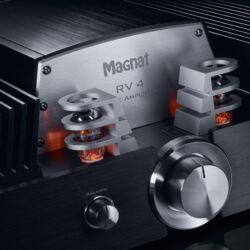 Trotzdem schauten Highender bei Magnat 2007 zum ersten Mal in die Röhre: Die RV-Serie erschien als Reminiszenz an klassische Röhrenverstärker aus den Siebzigern. Das Konzept des RV 1 wurde bis zum heutigen RV 4 immer weiter verfeinert, blieb aber der Hybrid-Idee verhaftet: Audiophile Röhrenvorstufe trifft transparente Transistorendstufe. Der brandaktuelle RV 4 bietet eine große Anschlussvielfalt: Vinyl-Fans freuen sich über einen Phonoeingang und Komfort-orientierte Streaming-Nutzer über Bluetoothanbindung mittels aptX.