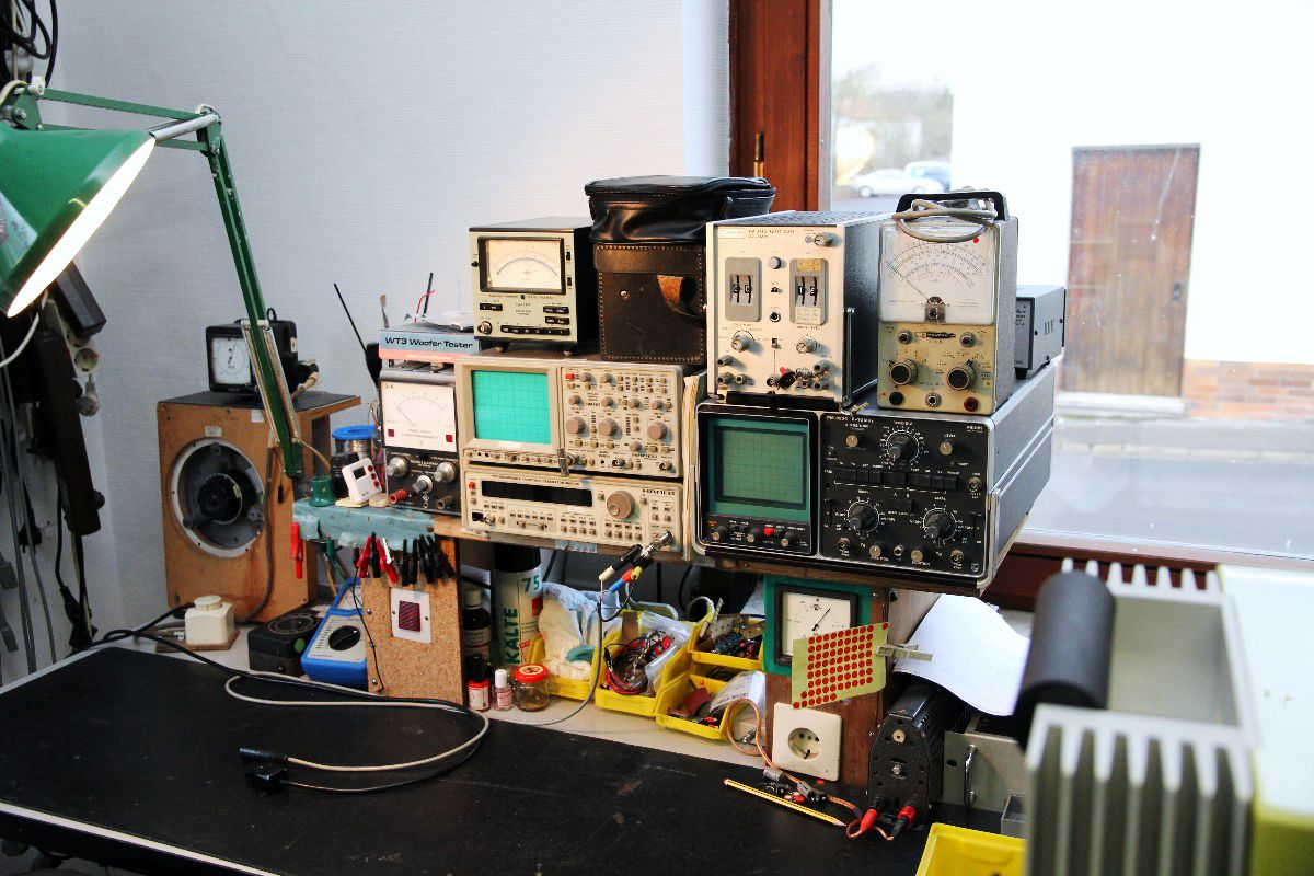Zum Abschluss der ersten Etappe meines Besuches werfen wir noch einen raschen Blick in die Servicewerkstatt, wo Martin Schuldt vor einem großen Tisch voller Messequipment mittlerweile den Endspurt des Updates eingeläutet hat. Er wünscht uns noch eine „gute Fahrt“, denn Daniela Manger und ich werden jetzt noch ein knappes Viertelstündchen durch die Rhön kurven. Sie hat tatsächlich ihren Vater erstmals dazu bringen können, einen Nicht-Pro-Audio-Journalisten im Manger’schen Privatrefugium zu empfangen und diesem ein paar persönliche Ansichten zu vermitteln – „weltexklusiv“ sozusagen. Ich freue mich jedenfalls sehr über diese Ehre.