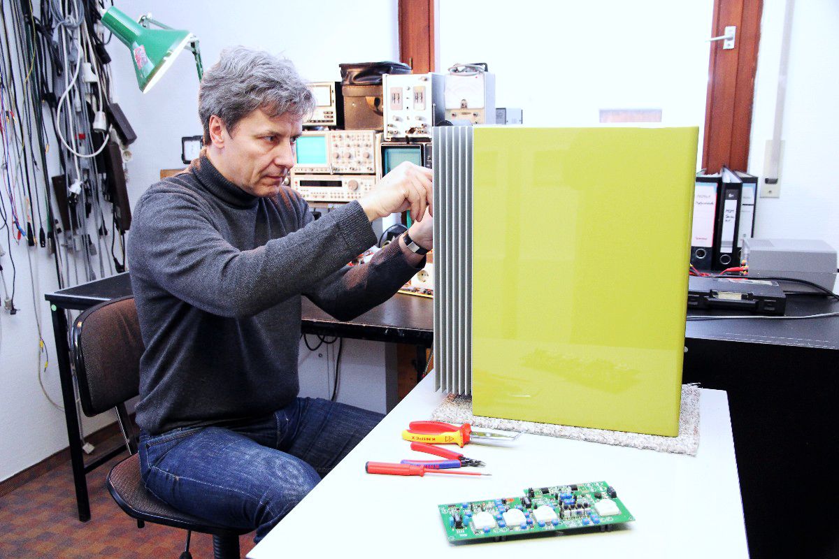 Kreuzberg? Bei diesem Stichwort steigt nun auch Martin Schuldt ins Gespräch ein: Den wahren Kreuzberg – nicht den Stadtteil – gibt’s hier ums Eck. Und außerdem „das beste Bier“, das nicht so herb wie die typisch norddeutschen Sorten sei. Er kenne sich da aus, schließlich komme er aus dem hohen Norden. Auf meine Frage hin, was ihn denn von der Waterkant in die unterfränkische Rhön-Region verschlagen habe, erfahre ich, dass der diplomierte Nachrichtentechniker (Fachgebiet: Schallwandler) bereits seit 1992 zur Manger-Familie gehört. In der Firma betreut Martin Schuldt größere Beschallungssysteme und Installationen, während Daniela Manger, ebenfalls diplomierte Nachrichtentechnikerin, sich um Kundenbetreuung, Service, aber auch um Neuentwicklungen kümmert. Beide verstehen sich zudem als „Mädchen für alles“. Das sei in einer kleinen Manufaktur doch selbstverständlich – und verglichen mit den Anforderungen zu Gründungszeiten sozusagen purer Mainstream.