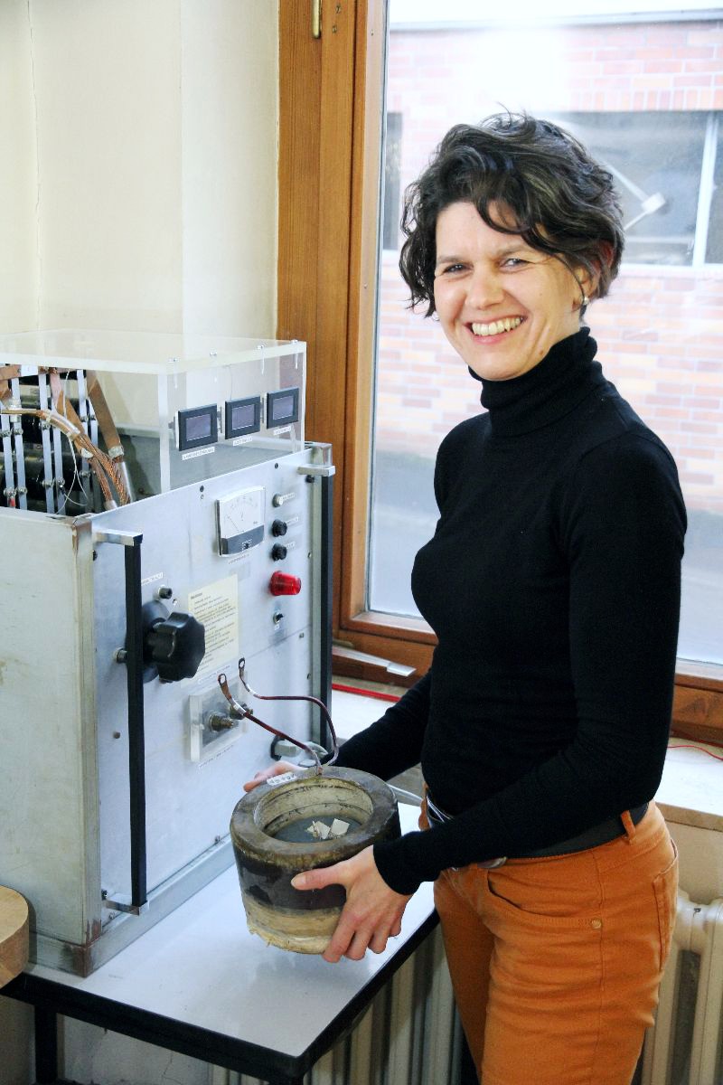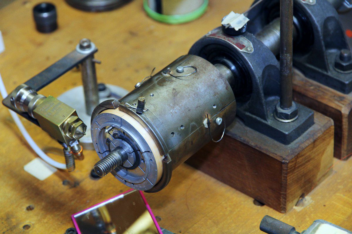 Das oben offene Magnetisiergerät in der Raumecke ist so ausgelegt, dass es bei einer bestimmten Fehlbedienung zwischen den Anschlussklemmen ein dickes Stück Draht mitsamt Klemmen in Rauch aufgehen lässt, und zwar „blitzartig“. Das, so beruhigt mich Daniela Manger, sei bisher zwar erst ein einziges Mal in Jahrzehnten vorgekommen, doch Respekt sei grundsätzlich berechtigt – und greift direkt in die Maschine hinein, um mir das Innenleben ein wenig zu erklären. Der Höllenblitz ist natürlich ausgeschaltet …