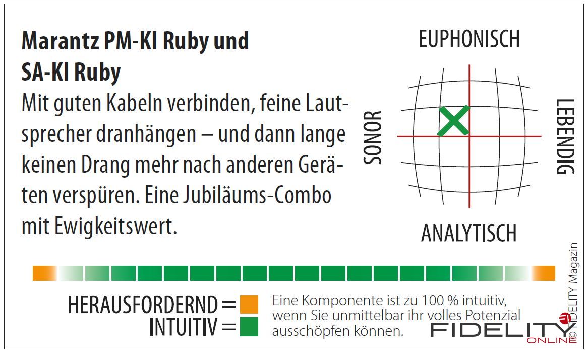 Wie von Ken Ishiwata, dem dezidierten Jazz- und Klassikfan, nicht anders zu erwarten, darf die Abstimmung der Rubys grundsätzlich als sehr gediegen angesehen werden. Dass manches minimal geschönt wird, gehört zum Konzept: Ishiwata wollte sichtlich keine sporadisch nervende, weil auf schlampig produzierte Musik empfindlich reagierende „Abhörlupe“ schaffen, sondern ein zuverlässiges Genussinstrument, das den Augen ebenso wie den Ohren schmeichelt und Musikwiedergabe auf Weltklasse-Niveau garantiert.
