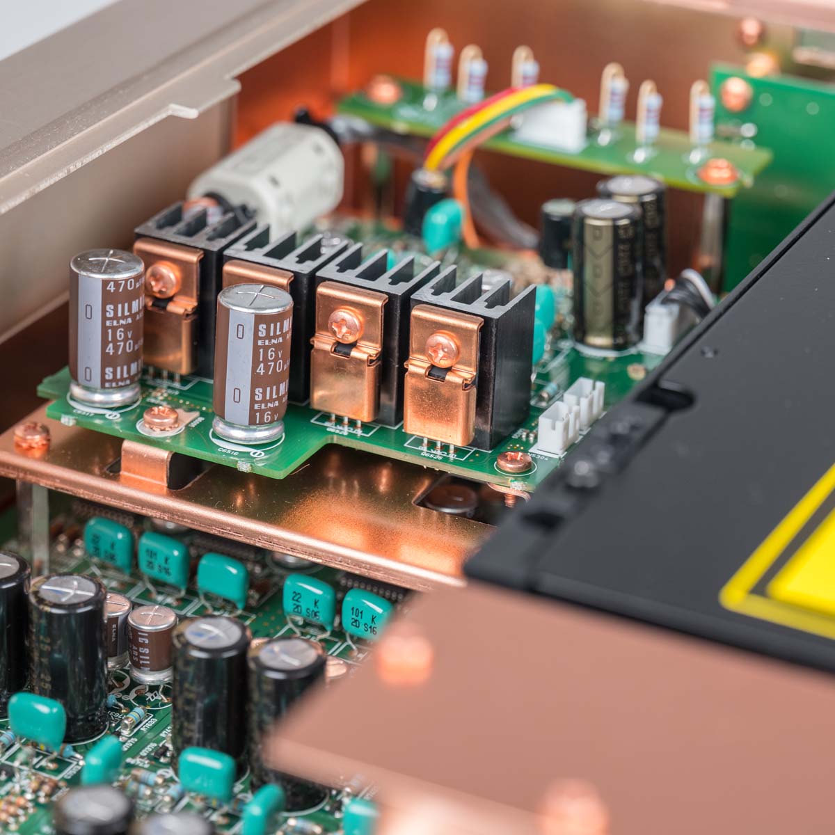 Die Technik hinter dem souveränen Klang der Marantz-Kette verkörpert die letzte Evolutionsstufe dessen, worauf die Geräte der Marke seit Jahrzehnten fußen. Das „Hyper Dynamic Amplifier Module“ etwa (HDAM), das sich auch in SA-10 und PM-10 wiederfindet, wurde schon 1992 eingeführt und zählt zu den Schlüsselkomponenten in Schaltungslayouts, die innovativ, aber niemals abenteuerlich erscheinen. Der „hyperdynamische Verstärker-Baustein“ ist der Gegenentwurf zu den gängigen Operationsverstärkern, wie man sie inzwischen allerorten auch in hochwertigen HiFi-Komponenten findet. Ein HDAM ist im Gegensatz zum Op-Amp aus Einzelbauteilen aufgebaut, was das Übersprechen reduziert und es erlaubt, klanglich besonders vorteilhafte Schaltungskomponenten einzusetzen. Zu den Konstruktionskniffen gehören unter anderem selektierte Feldeffekt-Transistoren (FETs) und mehrschichtige Platinen, die Vibrationen und Schwingungen den Garaus machen sollen. Außerdem besitzt ein HDAM metallene Abschirmungen, um Störfelder auszusperren. Marantz verspricht sich davon einen frischen, lebendigen Klang.