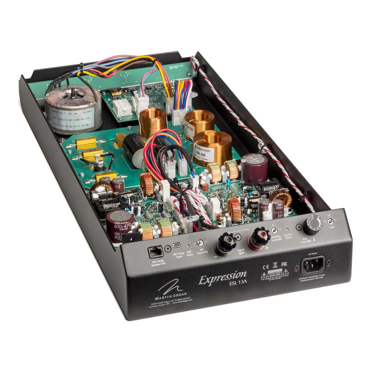 Vorbei. Moderne Computertechnik vom Entwurf über die Ausführung bis zum Betrieb macht es möglich, dass ein Hybrid-Elektrostat wie die MartinLogan Expression ESL 13A nicht nur mit einer breiten Elektronikpalette vom eher leistungsschwachen Röhren-Vollverstärker bis zur überaus potenten Transistor-Monoendstufe bestens zurechtkommt – während meiner Tests mussten unter anderem Amps von Accuphase, Air Tight, Audia Flight, Einstein, Gato, Marantz und Musical Fidelity an der MartinLogan Expression ESL 13A arbeiten – sondern auch an aus der Sicht des Bauprinzips vergleichsweise problematische Räume anpassbar ist.