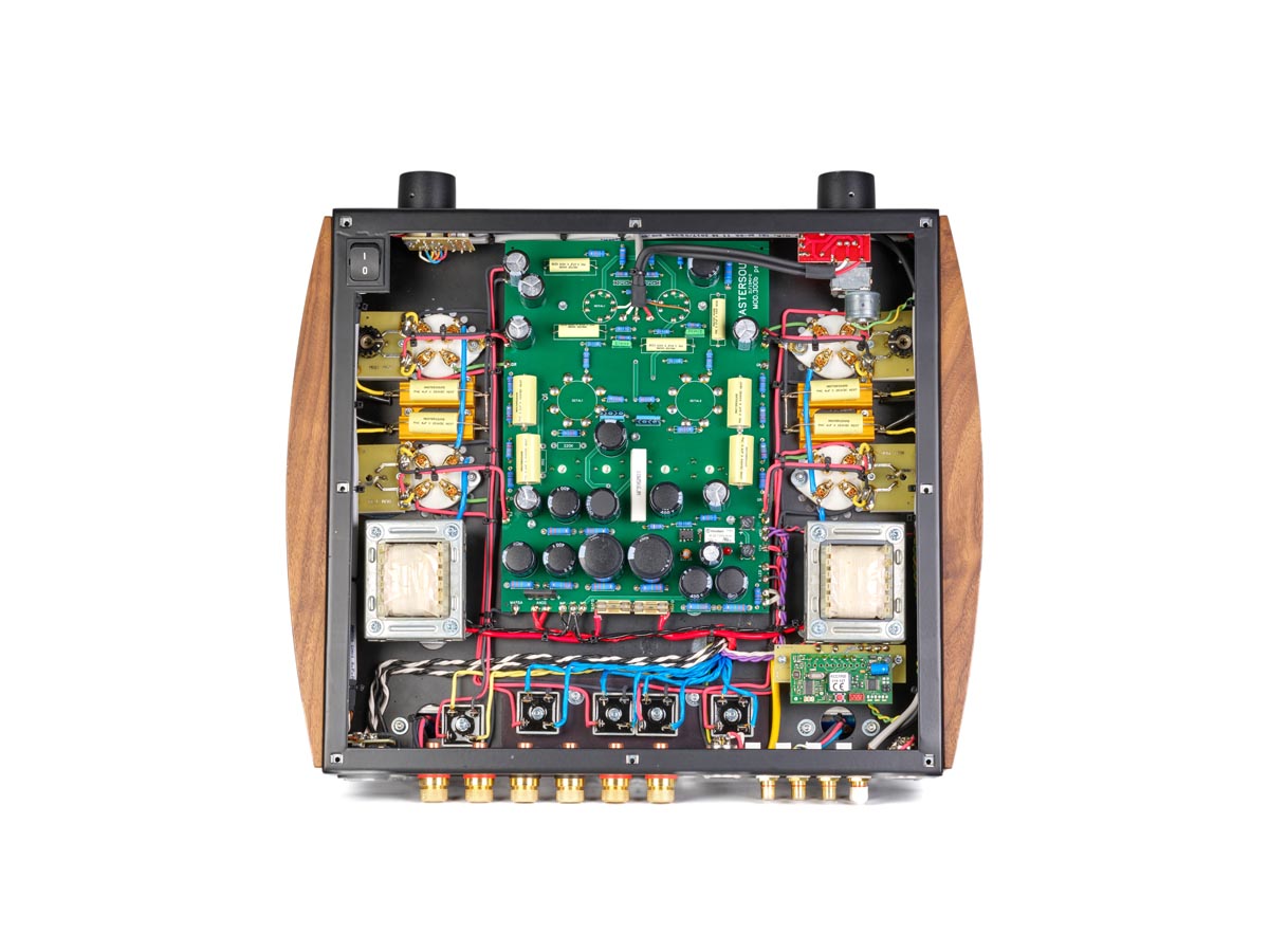 Antonio Ferro: Alle MastersounD-Verstärkerprojekte werden von Luciano Savanio entwickelt und betreut, der diese Kunst von seinem Vater Cesare erlernte. Über die Jahre hat Luciano das Design jedes einzelnen Details permanent optimiert und daran gearbeitet, die Parameter der Klangwiedergabe zu verbessern. Also zum Beispiel die Rauscharmut, das weite harmonische Spektrum, die Sprungantwort, die Kontrolle der tiefen Frequenzen und die Transparenz. Fast alle Komponenten der Schaltung werden entweder nach unseren Vorgaben von Zulieferern hergestellt oder direkt bei uns in der Firma von Hand gefertigt. Beispielsweise unsere Ausgangsübertrager, eine der Schlüsselkomponenten in einem Röhrenverstärker. Wenn man einen Triodenverstärker bauen will, muss man sich sehr genaue Gedanken darüber machen, welche Bauteile man verwendet und wie man diese im Gehäuse anordnet, etwa um das Rauschverhalten zu verbessern. Die perfekte Optimierung einer Schaltung erreicht man erst nach Jahren konstanter Arbeit daran – und diversen Verbesserungen, die diese Arbeit mit sich bringt. Dadurch hat man das Konzept „Röhrenverstärker“ auf ein Niveau gehoben, das noch vor ein paar Jahren unvorstellbar gewesen wäre. Die Grenzen des Röhrenverstärkers wurden stark ausgeweitet, die enorme Klangqualität noch einmal verbessert.