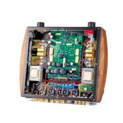 Antonio Ferro: Die 845 ist ebenfalls ein Teil der großen Triodenfamilie und wird als einer der besten Kompromisse angesehen, wenn es um die Filigranität des Klangs in Verbindung mit kraftvoller Wiedergabe geht. Allerdings ist die 845 sehr stromhungrig und braucht nicht nur einen entsprechend potenten Netztransformator, sondern auch viel Aufmerksamkeit bei Entwicklung und Konstruktion der Schaltung. Nur wenige Verstärkerhersteller weltweit sind in der Lage, diese Triode adäquat zu nutzen. Zudem sind bei Verstärkern, in denen die 845 eingesetzt wird, die Größe und das Gewicht entsprechend höher. Der Evolution 845 und vor allem der Monoblock PF100 sind überdimensioniert, wenn man sie mit herkömmlichen Verstärkern vergleicht. Mit dem Evolution 845, der 2013 von einer deutschen Fachzeitschrift als „Bester Vollverstärker der Welt“ ausgezeichnet wurde, sind wir an der Spitze angekommen, was schiere Verstärkerleistung und klangliche Verfeinerung angeht. Mit 55 Watt im Class-A-Betrieb kann er praktisch alle Lautsprecher des Weltmarktes antreiben, ohne dass jemals das Gefühl aufkommt, mit einer Vor-/Endstufenkombination klanglich besser zu fahren. Die ECC802-Röhre, eine besonders rauscharme Version der ECC82, kommt ebenfalls in allen unseren Vollverstärkern für die Vorverstärkerstufe und zum Teil auch in der Treiberstufe zum Einsatz. In den Triodenverstärkern benutzen wir die ECC802 anstelle der 6SN7 für die Treiberstufe. Was auch ganz wichtig ist: die korrekte Einstellung des Ruhestroms, die mit den entsprechenden Instrumenten einen perfekten Abgleich der beiden Stereokanäle ermöglicht.