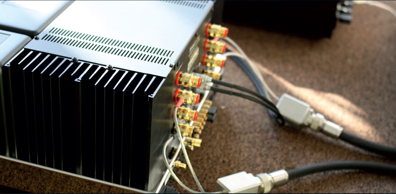 Im MA7000 arbeiten bewährte McIntosh-Ingredienzen und behutsam implementierte Neuerungen Seite an Seite. So gelten etwa Trafos im Ausgang von Transistorverstärkern geradezu als Markenzeichen von McIntosh. In diesem Fall sind die vermeintlichen Übertrager gar keine, vielmehr stecken zwei Autoformer im Chassis – Trafos mit nur einer Wicklung ohne galvanische Trennung, aber mehreren Anschlüssen, die jeweils für eine bestimmte Lautsprecherimpedanz ausgelegt sind. Der Zweck ist, den Verstärker von der Lautsprecherlast zu entkoppeln und ihn unabhängig vom angeschlossenen Schallwandler immer auf den optimalen elektrischen Abschluss arbeiten zu lassen. Entsprechend finden sich an der Verstärkerrückseite Anschlüsse für Lautsprecher mit zwei Ohm, vier Ohm und acht Ohm Impedanz. Hinter „ThermalTrak“ verbergen sich Leistungstransistoren mit integriertem Temperatursensor. Da Stromfluss, Temperatur und lineare Arbeitsweise zusammenhängen, soll eine präzise Überwachung so nahe wie möglich am Ort des Geschehens Verzerrungen minimieren. McIntosh betont gleichzeitig auch die optimierte Effizienz der Verstärkerschaltung, die in vergleichsweise niedriger Erwärmung des ganzen Geräts resultiert, was nicht nur die Betriebssicherheit erhöht, sondern auch den Stromverbrauch senkt.