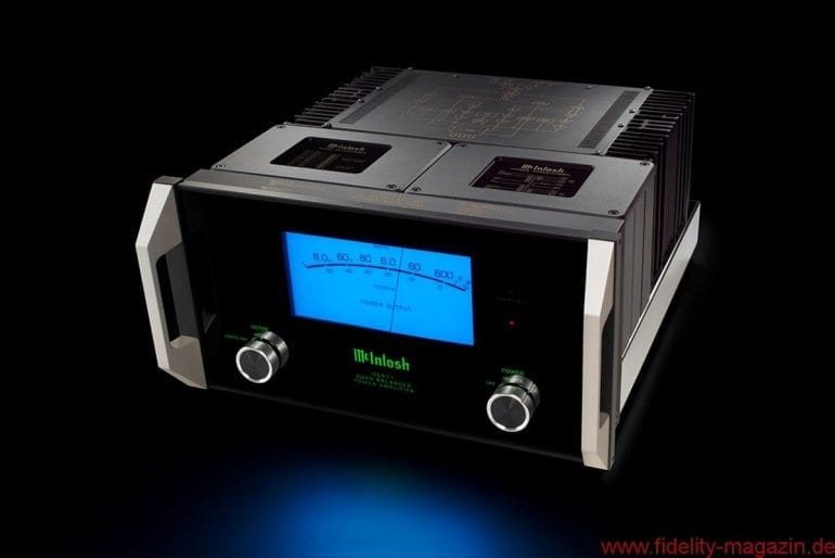 The MC611 sits on a beautiful polished stainless steel chassis and features the timeless McIntosh aesthetic of a black glass front panel, illuminated logo, control knobs, aluminum handles and a large 8” (20.3 cm) fast responding blue Watt meter.