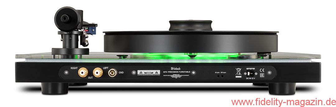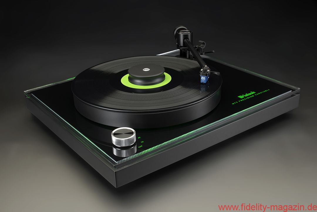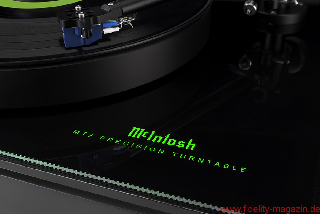 The McIntosh MT2 Precision Turntable combines the latest in turntable technology and design to deliver both superb performance and accurate playback. A full complement of features allows for all recordings to be reproduced with flawless realism. Its advanced electronic and mechanical design will give many years of smooth, trouble-free operation. A subtle green glow emanates from under the platter and the outside edges of the plinth for a touch of refined ambiance and connection to the McIntosh design aesthetic.