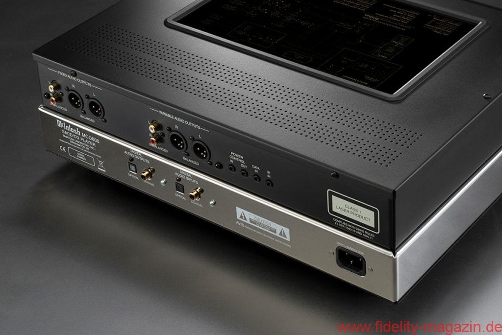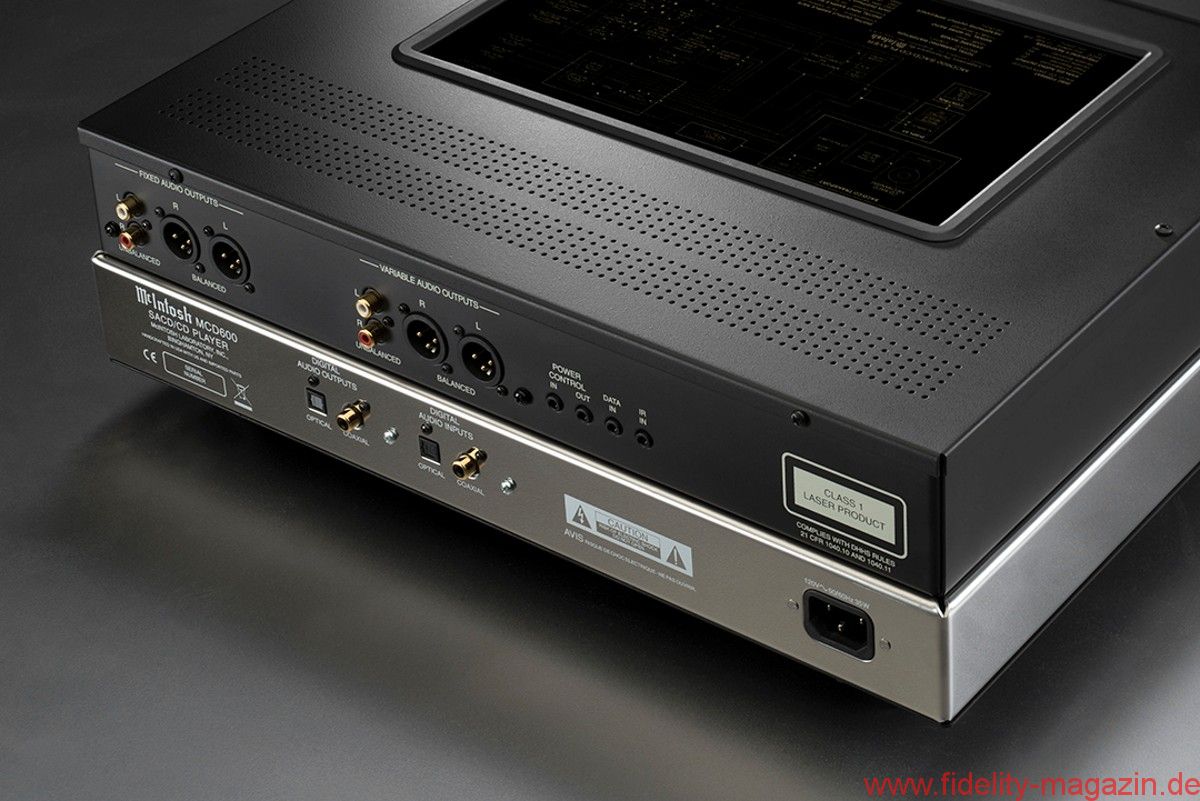 The MCD600 includes both fixed and variable balanced and unbalanced outputs; the variable outputs combined with its volume control allow the MCD600 to be connected directly to a power amplifier without needing a preamplifier. Coax and optical digital inputs and outputs are included as is the McIntosh High Drive headphone amplifier.