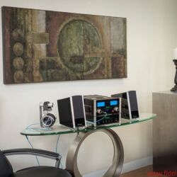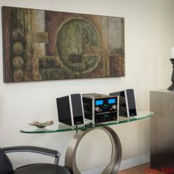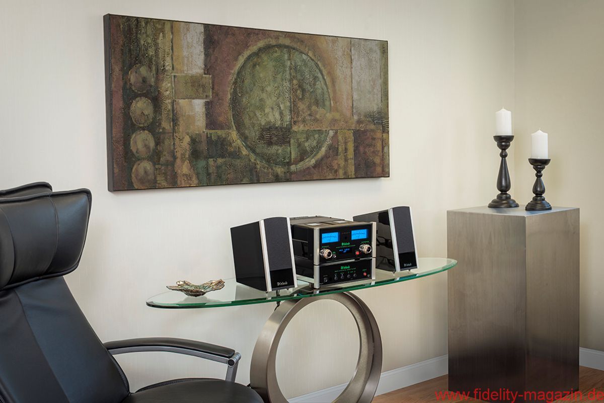 The MXA80’s compact size makes it a great audio system for an office, bedroom or vacation house. Combine it with the similarly-sized MB50 Streaming Audio Player and MP100 Phono Preamplifier to form the basis of a complete audio system. The amplifier is housed in a beautiful polished stainless steel chassis that compliments the classic glass front panel, knobs and brushed aluminum end caps; the speakers come with a luxurious, high gloss piano black finish.