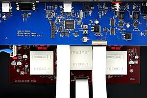 Ed Meitner zählt fraglos zu den Pionieren, die den klanglichen Einfluss von Jitter erkannten und das Thema konsequent verfolgten. So profitiert denn auch der MA-2 von zwei Jahrzehnten Jitter-Knowhow. Ähnlich wie bei asynchron arbeitenden USB-Eingängen sind Digitalquelle und D/A-Wandler bei ihm nicht starr aneinander gekoppelt, sondern können unabhängig voneinander arbeiten, was den Einsatz einer besonders exakten Zeitbasis nahe den Wandlerchips ermöglicht. Zur Synchronisation analysiert er permanent den am Digitaleingang anliegenden Datenstrom und extrahiert zudem die Audio-Daten. Diese werden dann mithilfe einer intelligenten Systemzeitbasis neu getaktet. Hierzu dient nicht, wie üblich, ein Schwingquartz mit einer einzigen, festen Frequenz, vielmehr wird die Referenz präzise von einem eigenen digitalen Signalprozessor vorgegeben. Der wiederum bezieht sich auf die bei der Analyse des Eingangsignals ermittelte Taktfrequenz. Weil die DSP-Zeitbasis den Steuertakt auch für die D/A-Wandler-Bausteine im MA-2 vorgibt, kommen die Audiodaten dort immer zum richtigen Zeitpunkt an. Auf digitalem Wege „ausgefiltert“, wird nicht nur der Jitter eliminiert – auch kann der Kanadier unabhängig von der Beschaffenheit des anliegenden Digitalsignals seiner Wandlerarbeit nachgehen, was ihn quasi immun gegen Laufwerkseigenschaften macht.