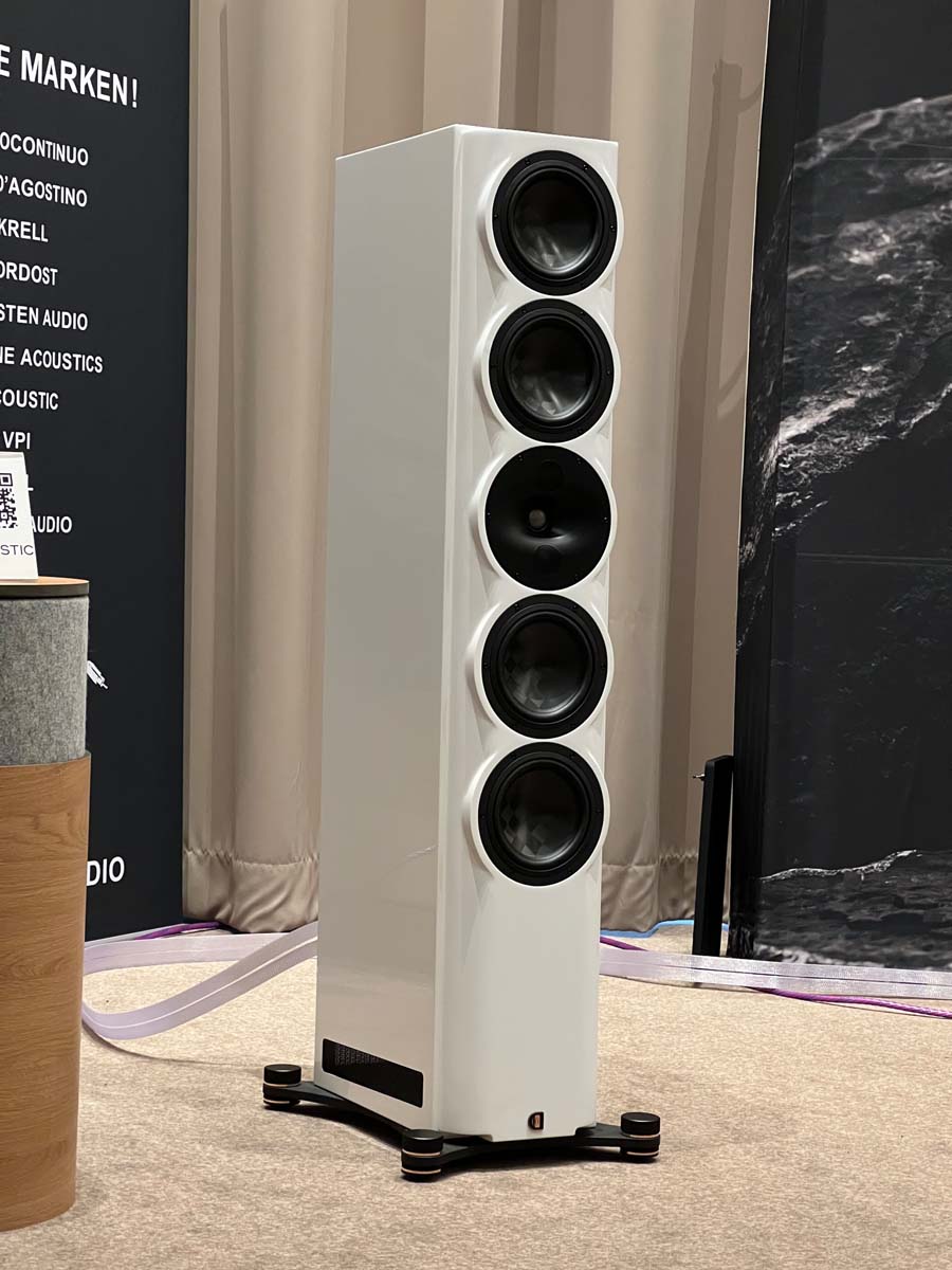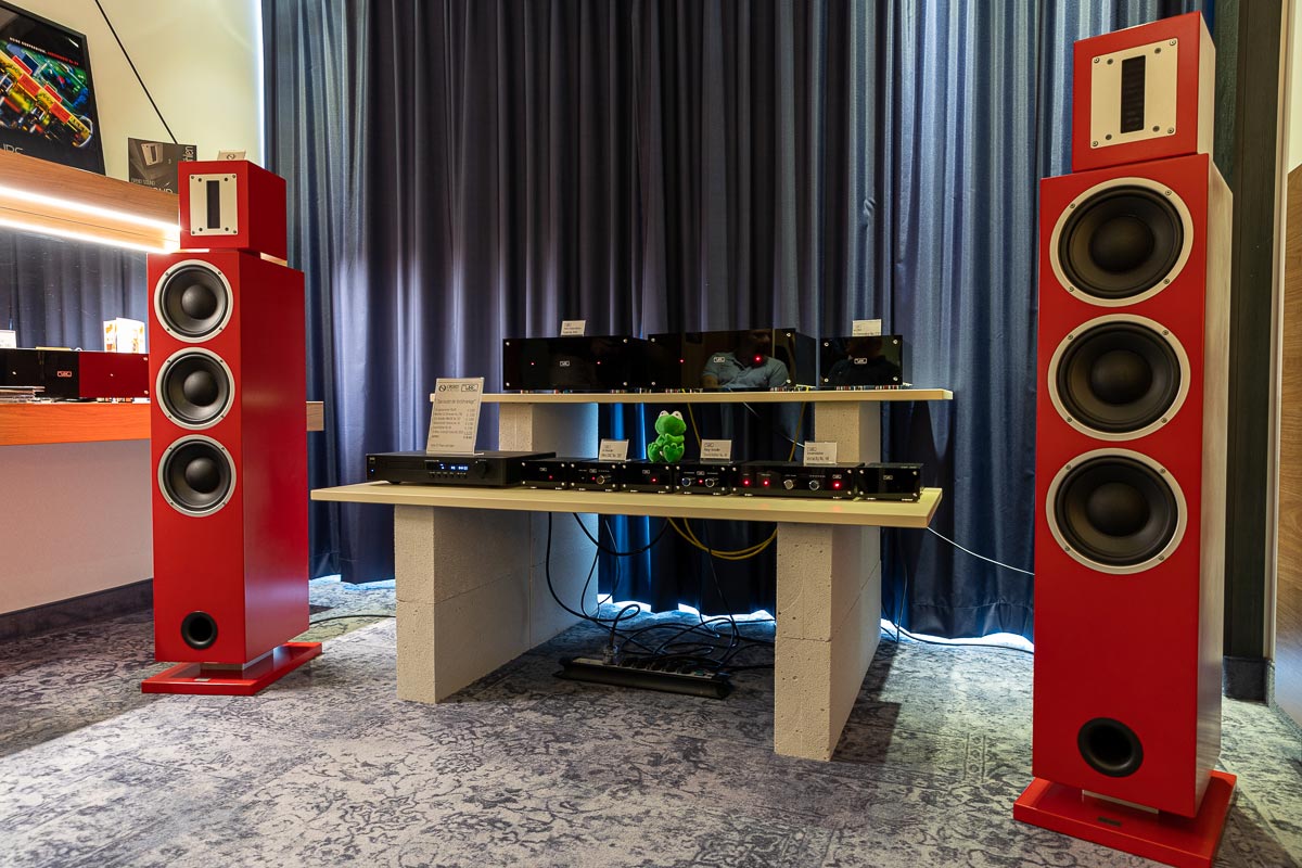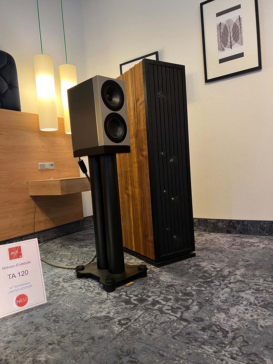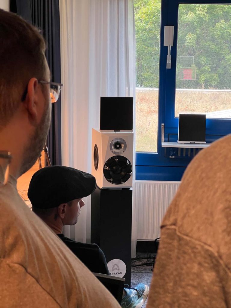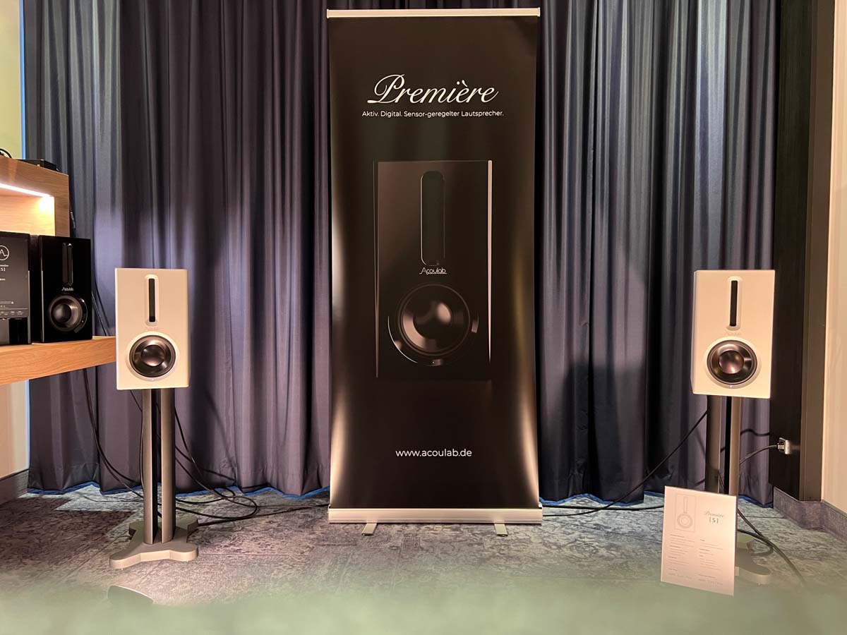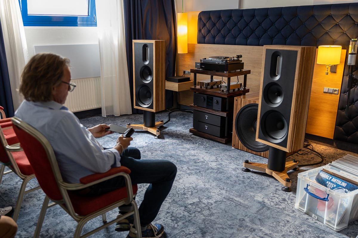 Mit separaten Gehäusen und DSP-basierten Weichen setzt Lyravox wie kaum ein anderer Aussteller auf Kontrolle in allen Belangen. Trotz der schon sehr guten Ausgangslage ließ man es sich aber dennoch nicht nehmen, die Stärken des vollaktiven Hünen Karl 2 inklusive Raumanpassung auszuspielen: Penibel auf die Raumakustik ausgemessen, bot mir der Turm eine herausragend durchhörbare Performance dar.