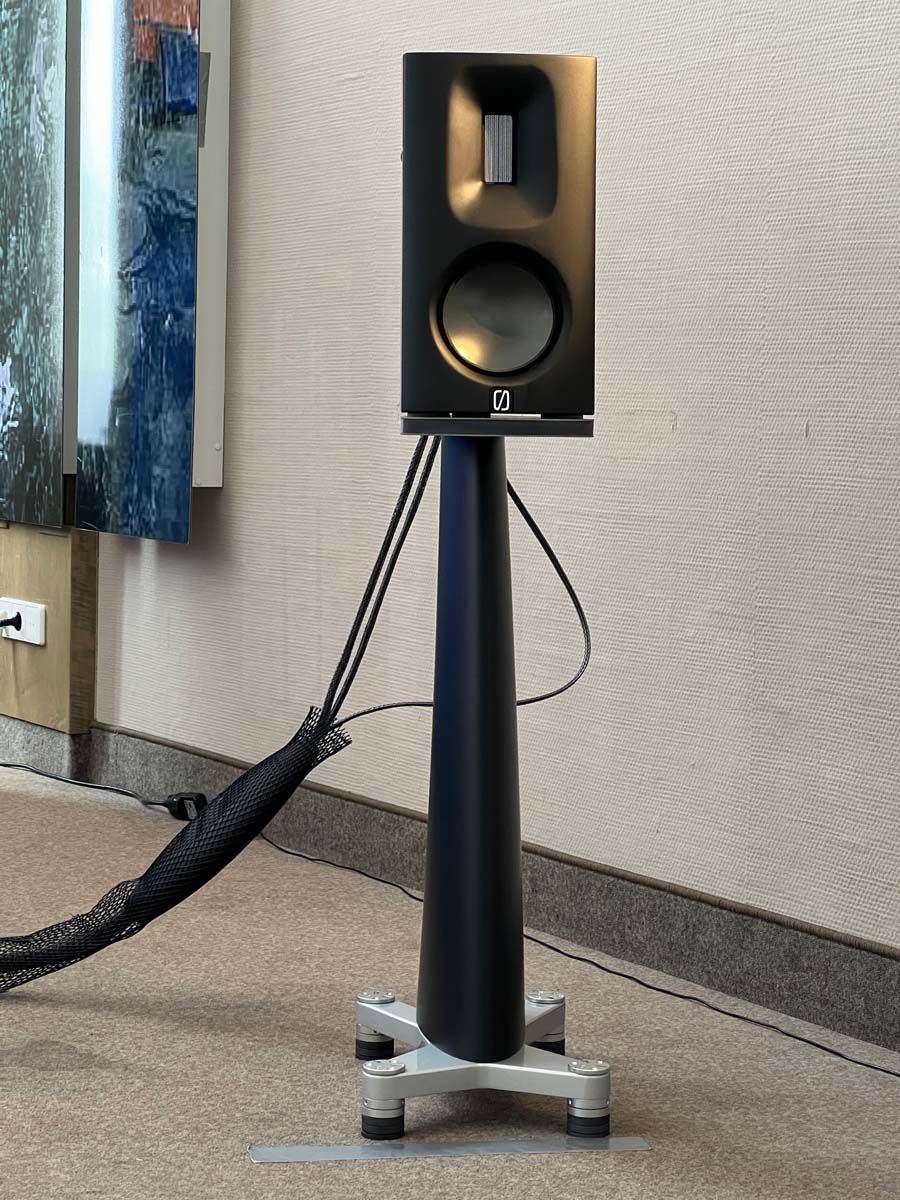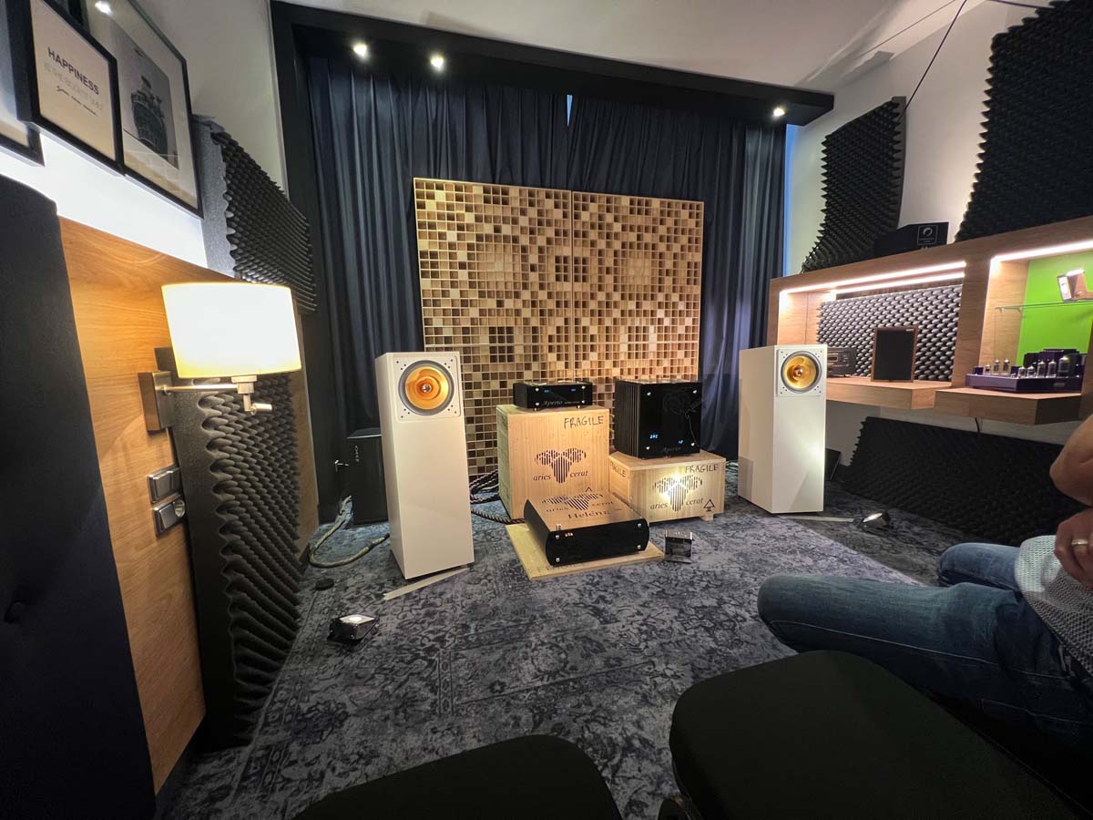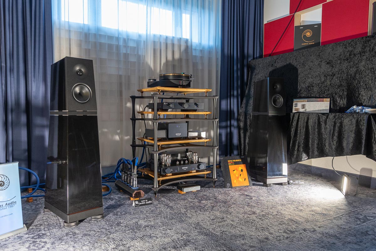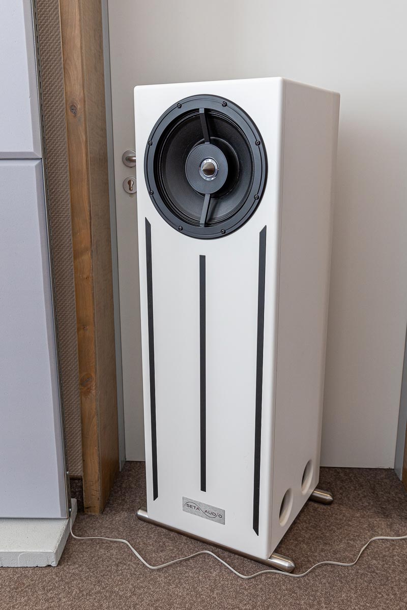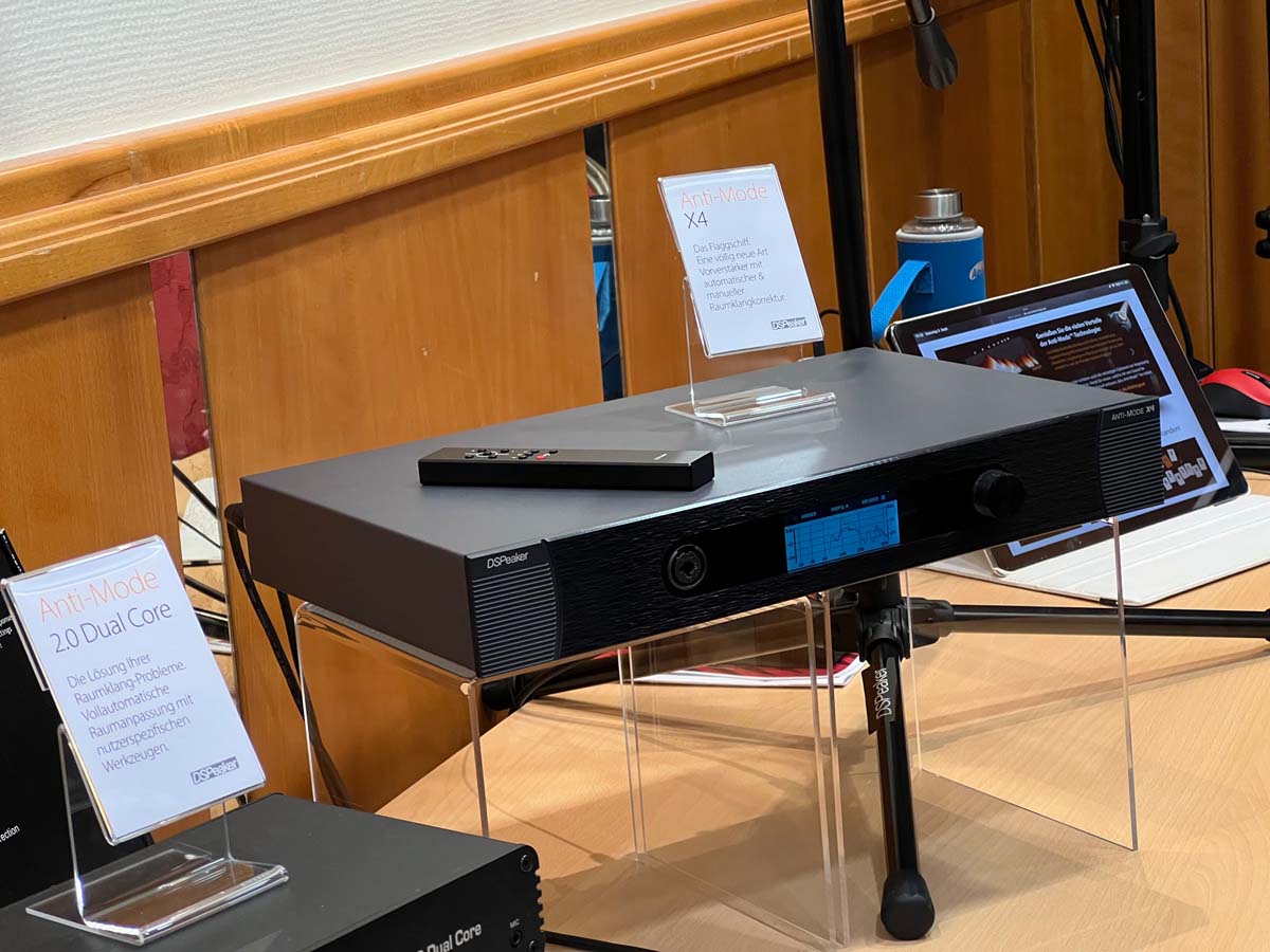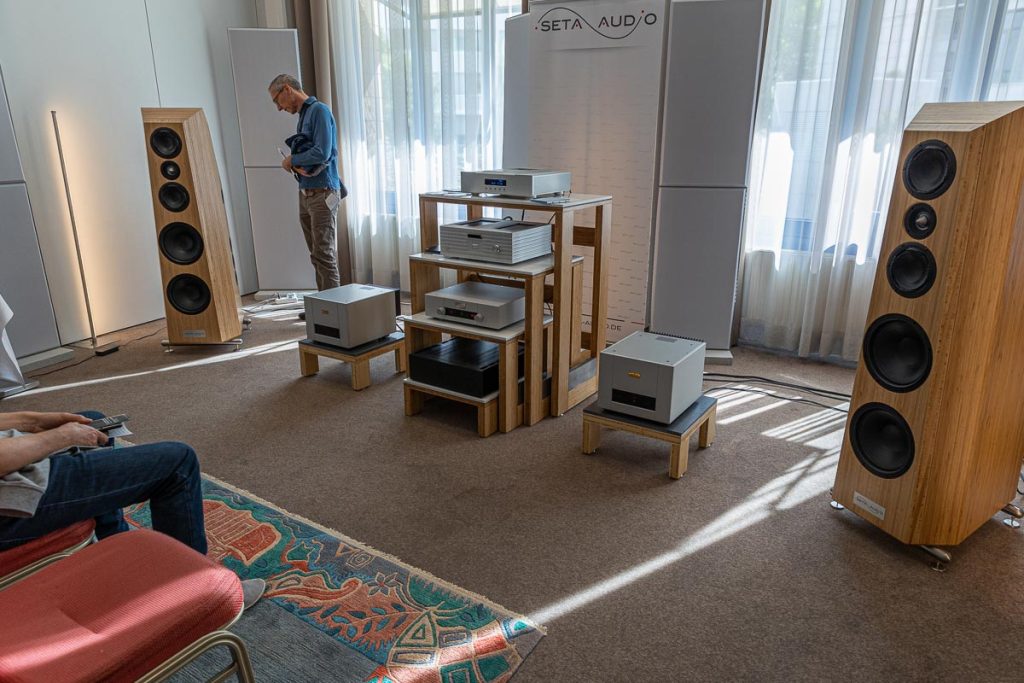 Mit separaten Gehäusen und DSP-basierten Weichen setzt Lyravox wie kaum ein anderer Aussteller auf Kontrolle in allen Belangen. Trotz der schon sehr guten Ausgangslage ließ man es sich aber dennoch nicht nehmen, die Stärken des vollaktiven Hünen Karl 2 inklusive Raumanpassung auszuspielen: Penibel auf die Raumakustik ausgemessen, bot mir der Turm eine herausragend durchhörbare Performance dar.