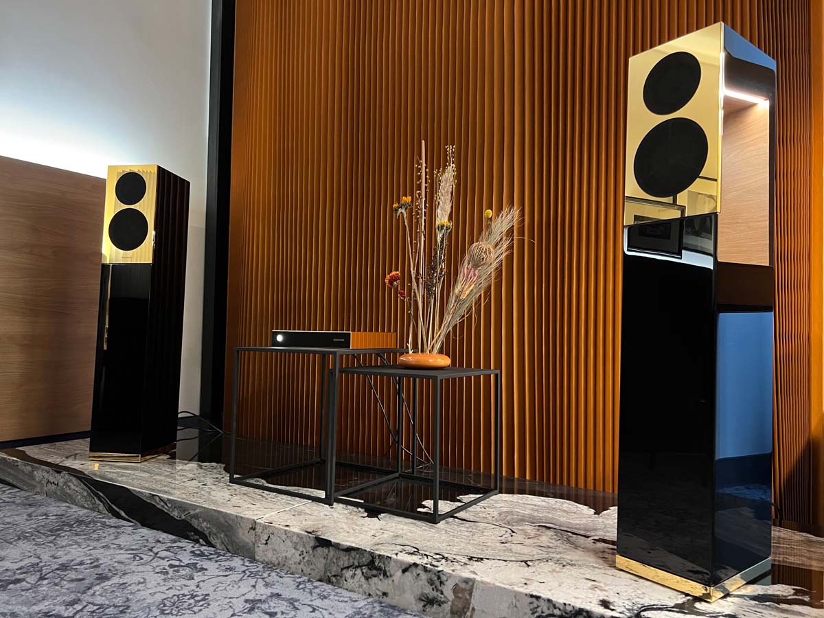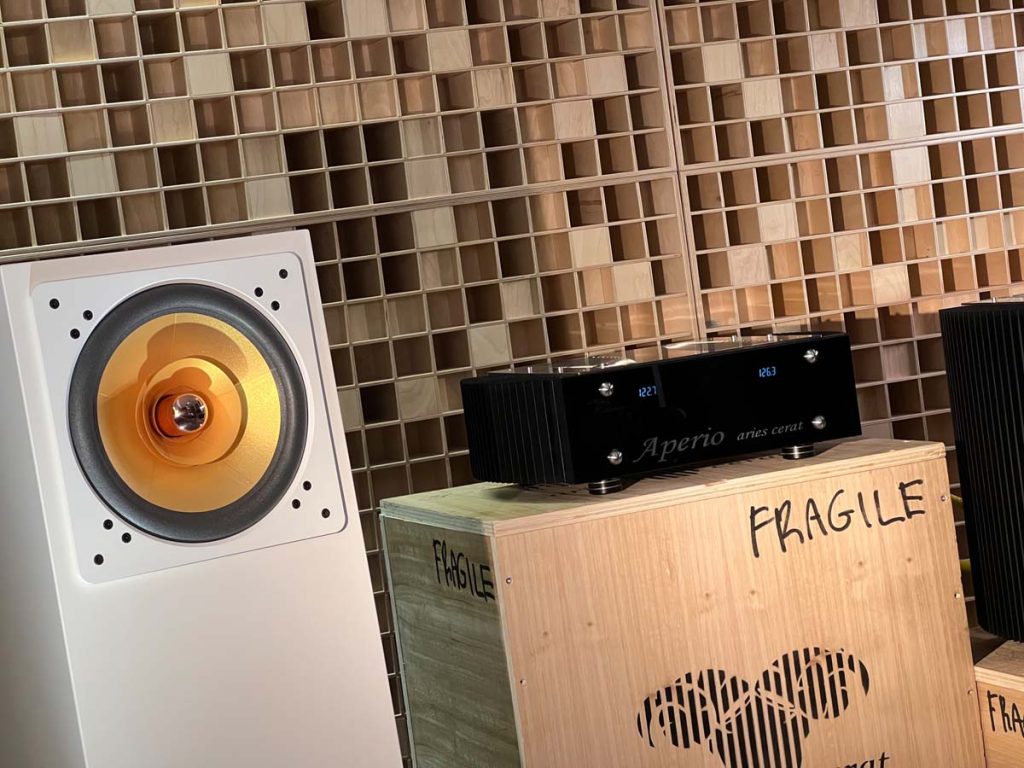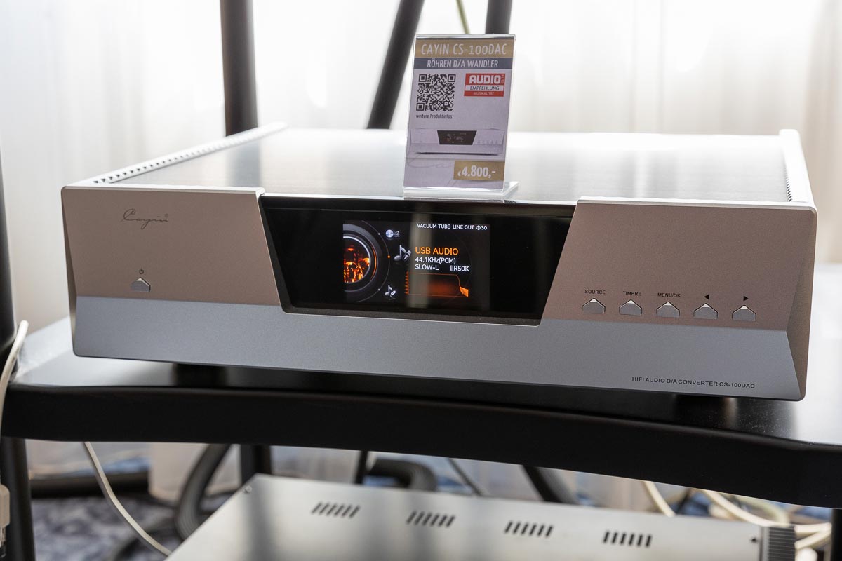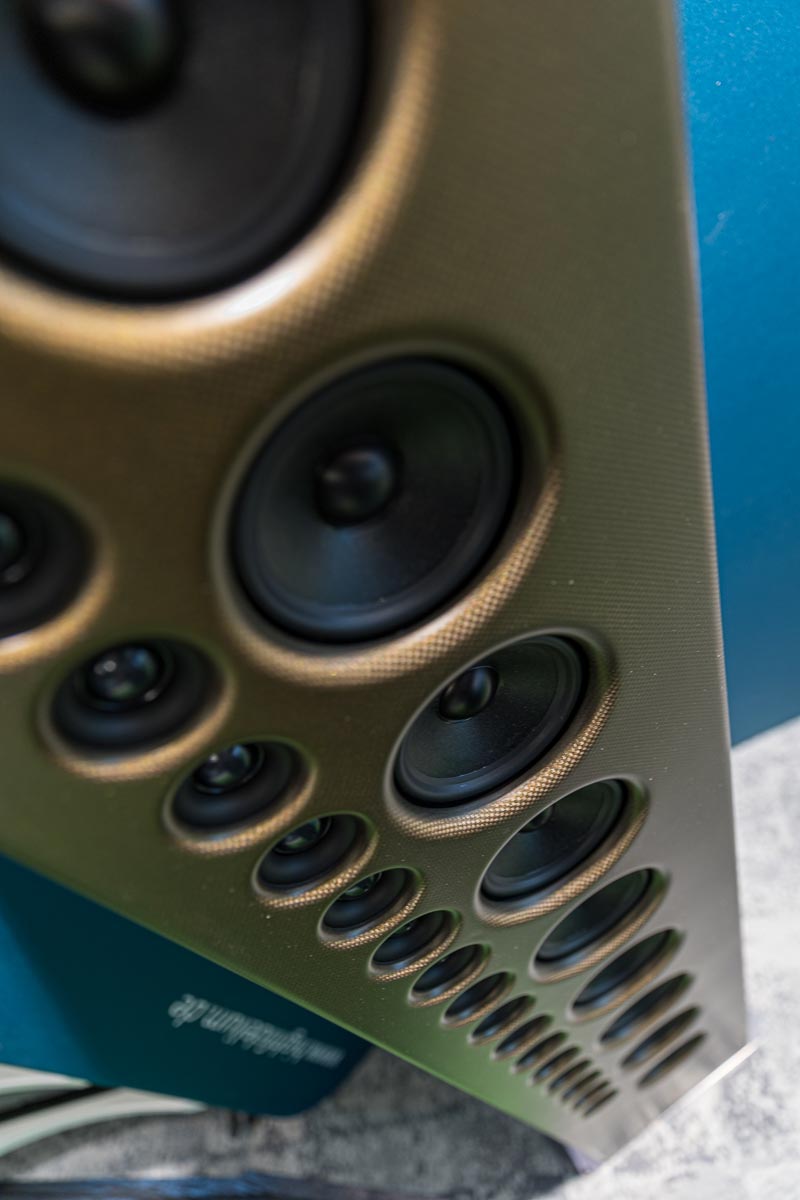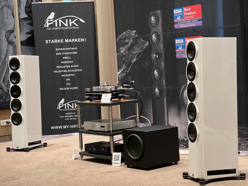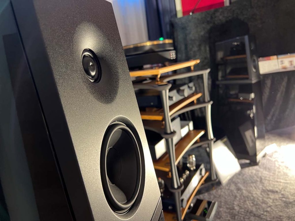 Mit separaten Gehäusen und DSP-basierten Weichen setzt Lyravox wie kaum ein anderer Aussteller auf Kontrolle in allen Belangen. Trotz der schon sehr guten Ausgangslage ließ man es sich aber dennoch nicht nehmen, die Stärken des vollaktiven Hünen Karl 2 inklusive Raumanpassung auszuspielen: Penibel auf die Raumakustik ausgemessen, bot mir der Turm eine herausragend durchhörbare Performance dar.