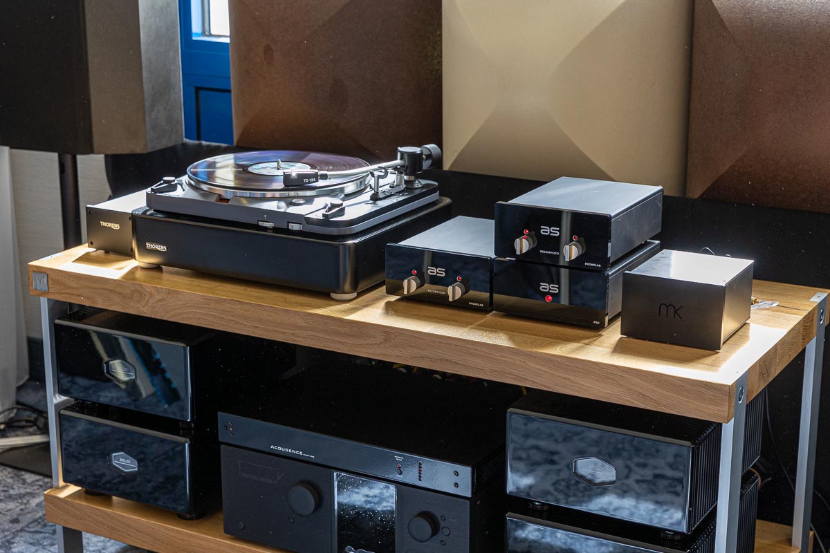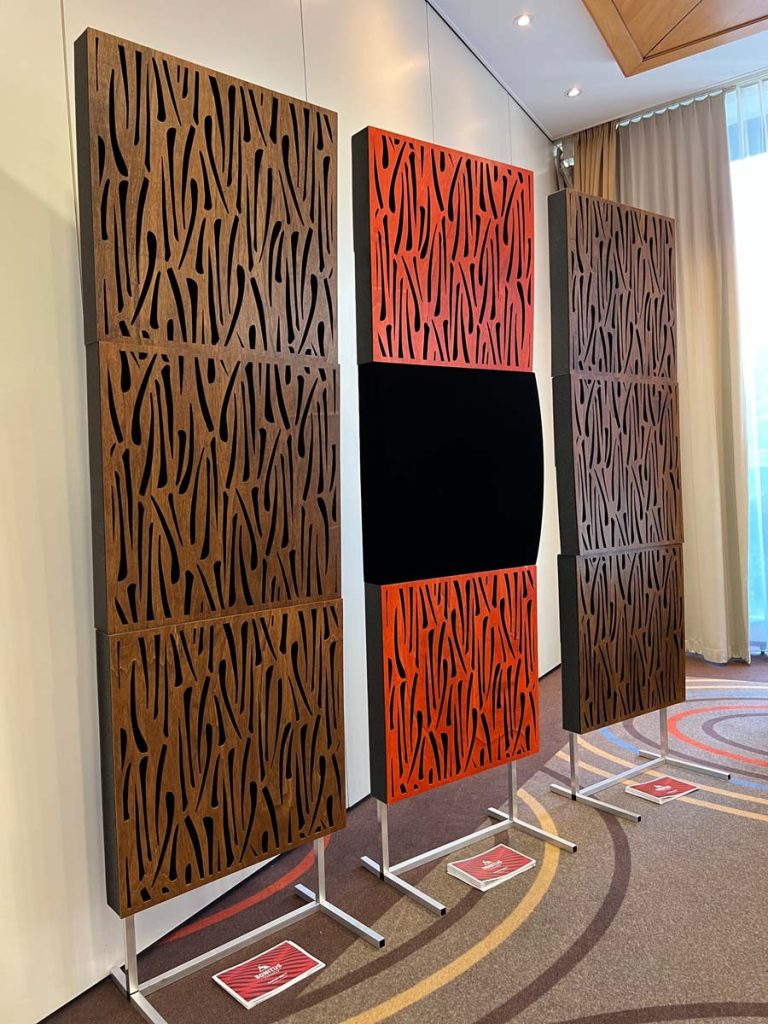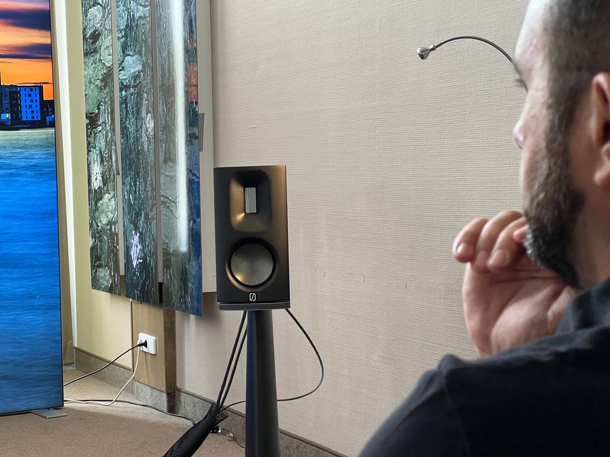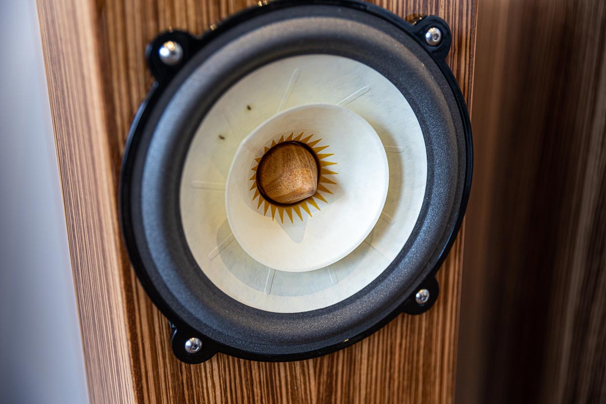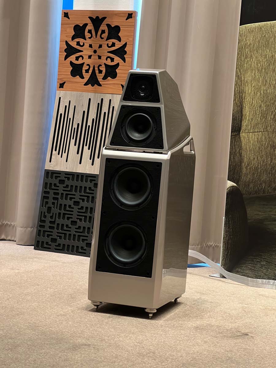 Mit separaten Gehäusen und DSP-basierten Weichen setzt Lyravox wie kaum ein anderer Aussteller auf Kontrolle in allen Belangen. Trotz der schon sehr guten Ausgangslage ließ man es sich aber dennoch nicht nehmen, die Stärken des vollaktiven Hünen Karl 2 inklusive Raumanpassung auszuspielen: Penibel auf die Raumakustik ausgemessen, bot mir der Turm eine herausragend durchhörbare Performance dar.
