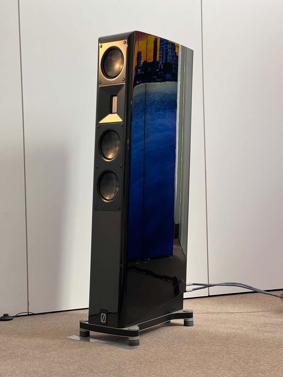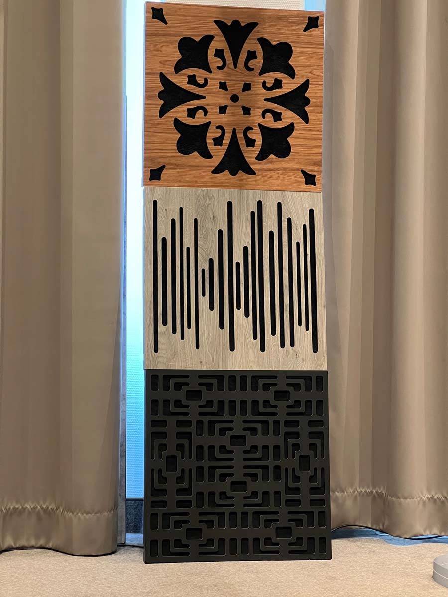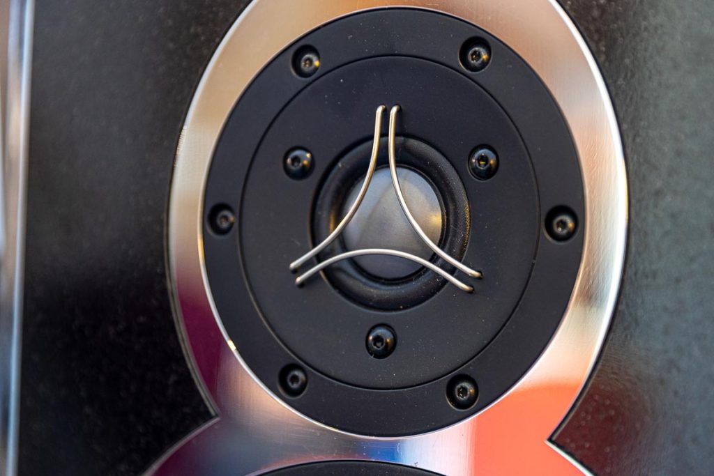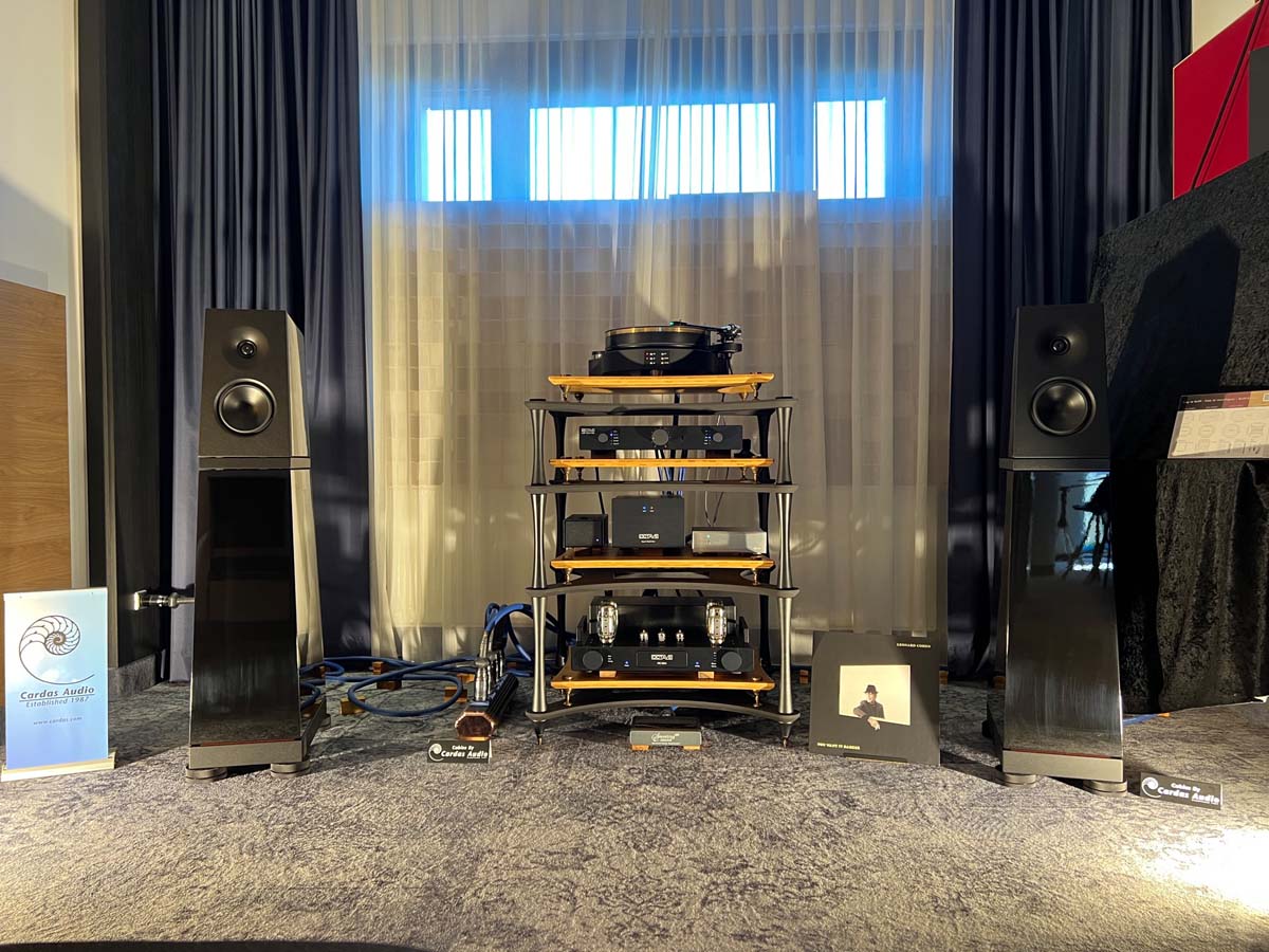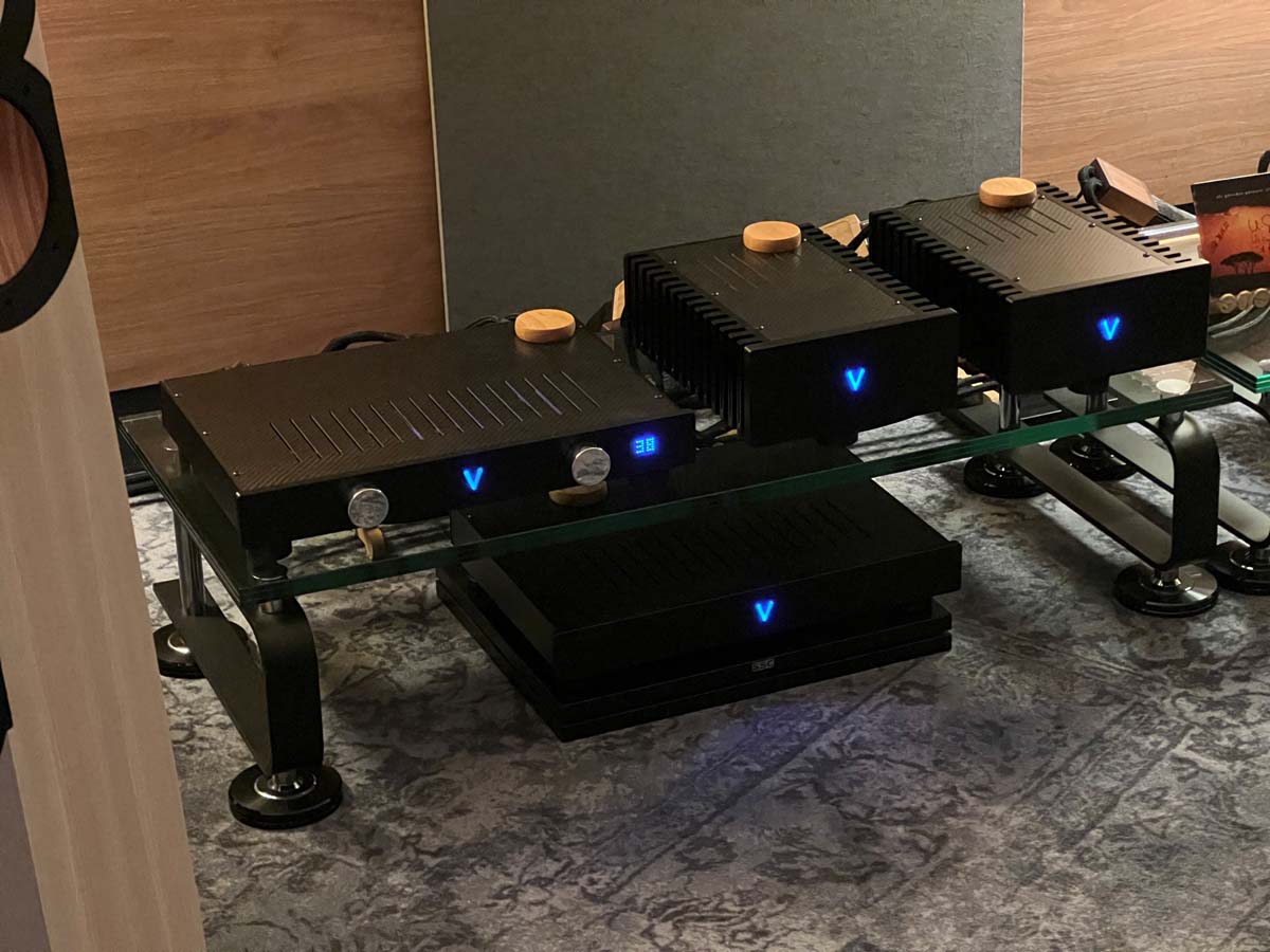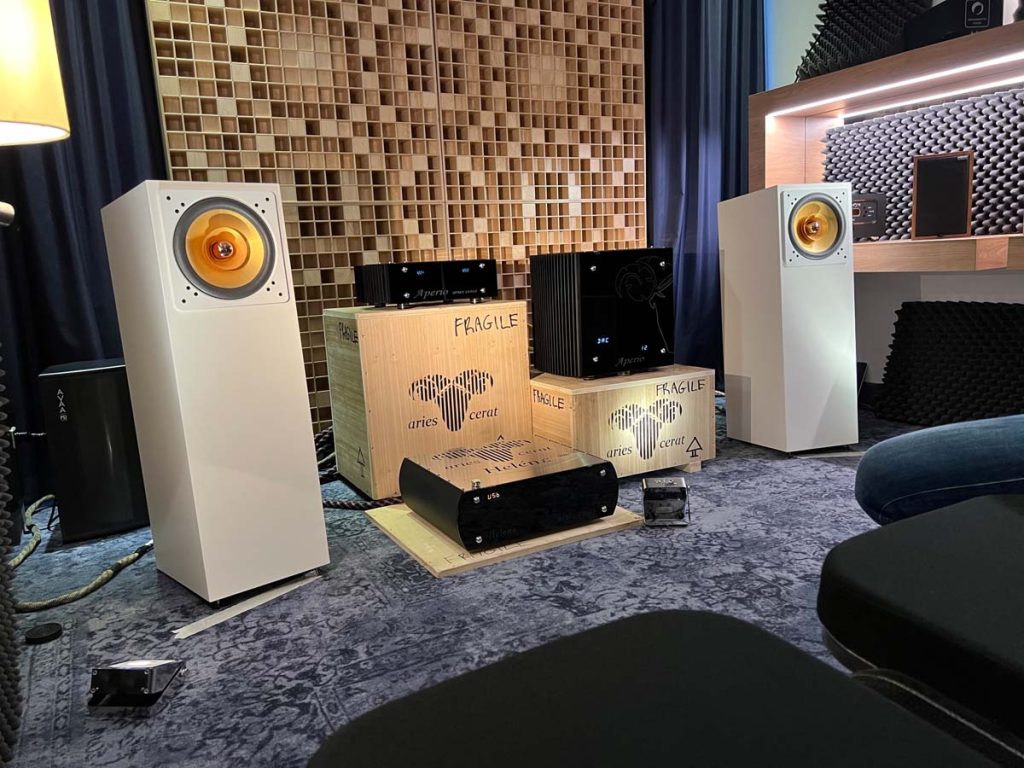 Mit separaten Gehäusen und DSP-basierten Weichen setzt Lyravox wie kaum ein anderer Aussteller auf Kontrolle in allen Belangen. Trotz der schon sehr guten Ausgangslage ließ man es sich aber dennoch nicht nehmen, die Stärken des vollaktiven Hünen Karl 2 inklusive Raumanpassung auszuspielen: Penibel auf die Raumakustik ausgemessen, bot mir der Turm eine herausragend durchhörbare Performance dar.